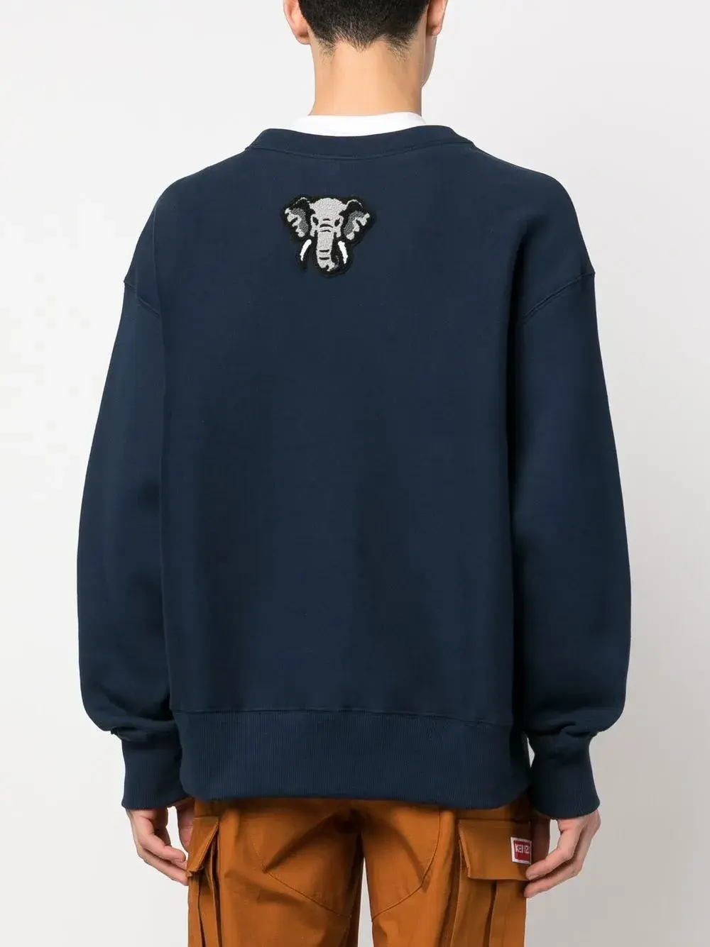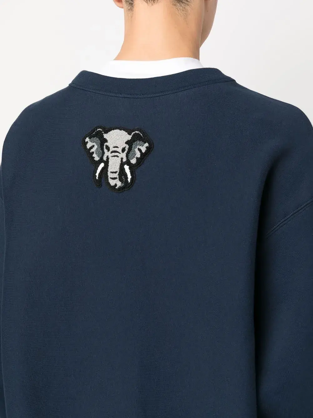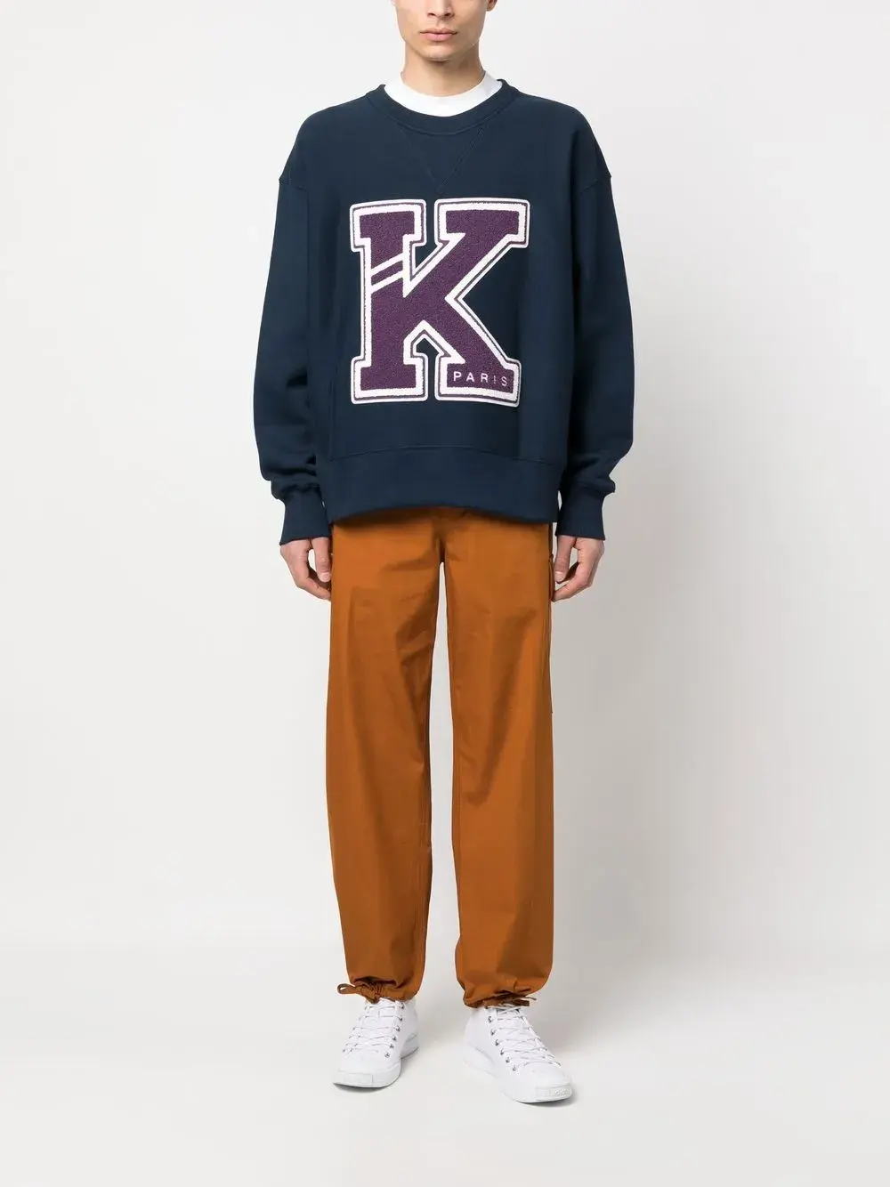 Темно-синий, фиолетовый, белый, хлопок, флисовый материал, логотип-аппликация, детали в рубчик, круглый вырез, приспущенные плечи и длинные рукава.