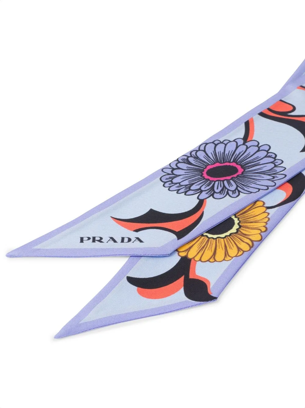 Твиловый шарф с цветочным принтом Prada, синий 29 718₽