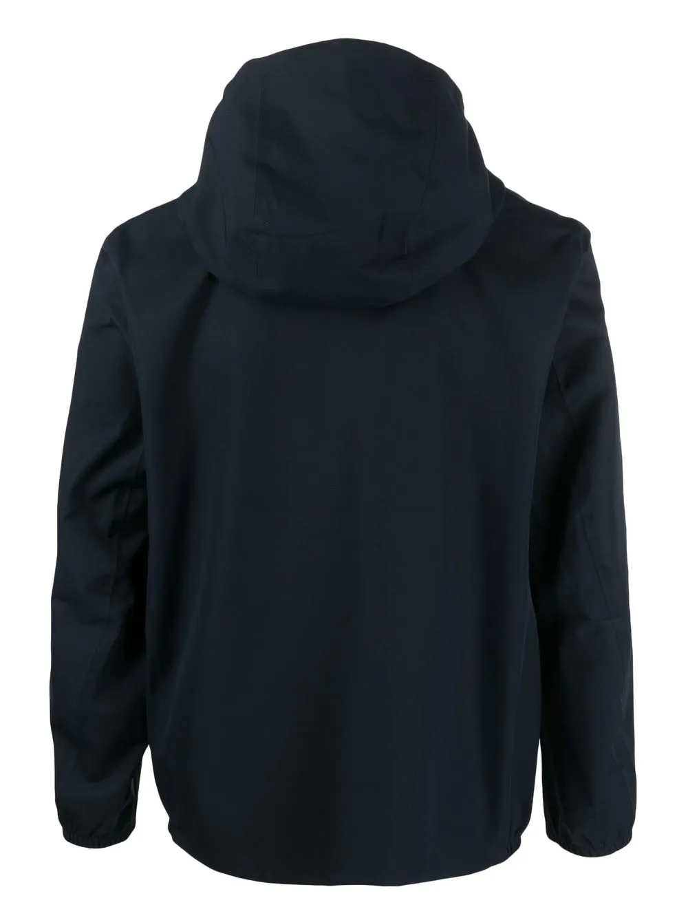 Темно-синий, отделка лентой с логотипом, застежка на молнии спереди, классический капюшон, длинные рукава, эластичные манжеты и прямой подол.