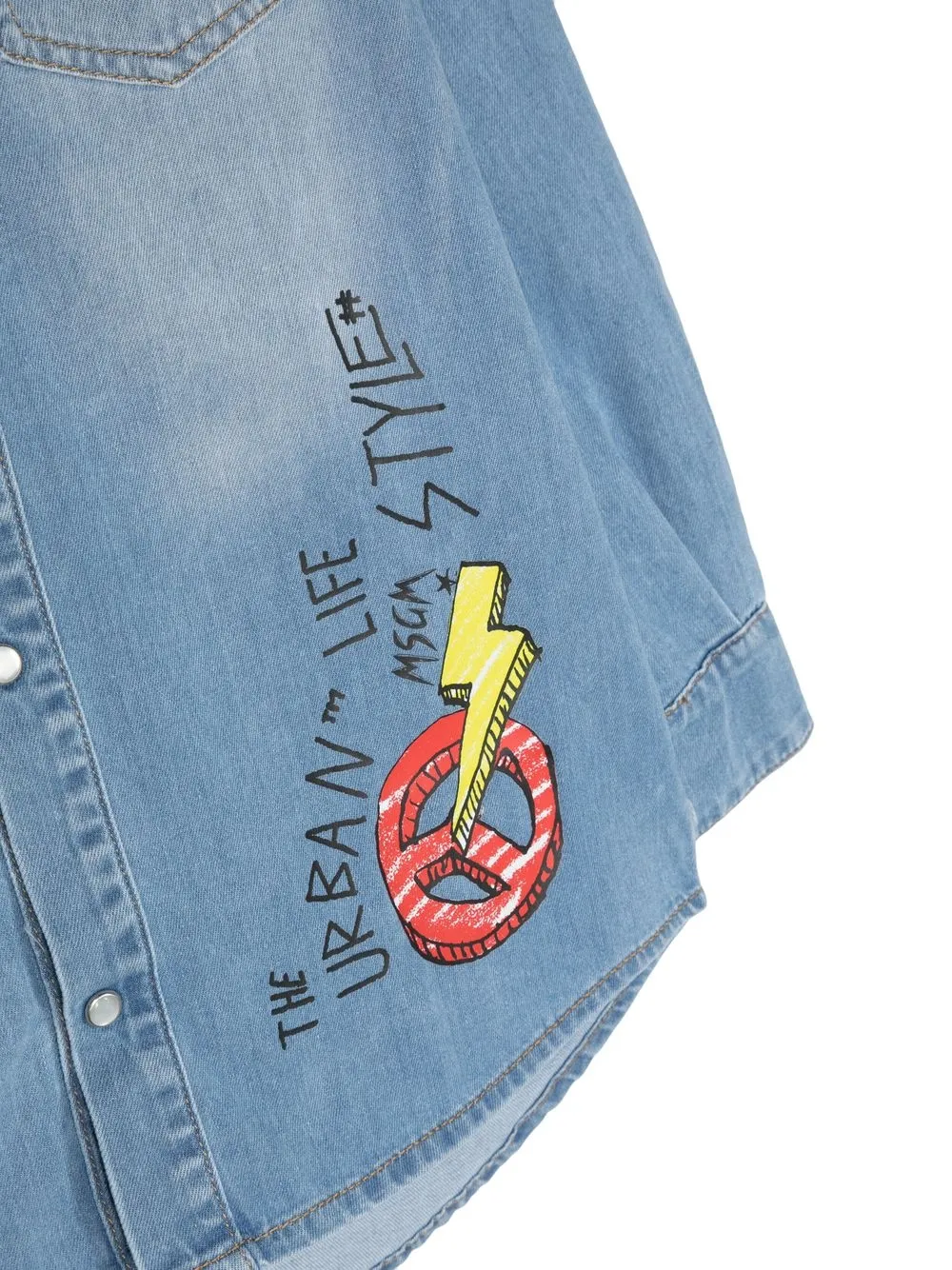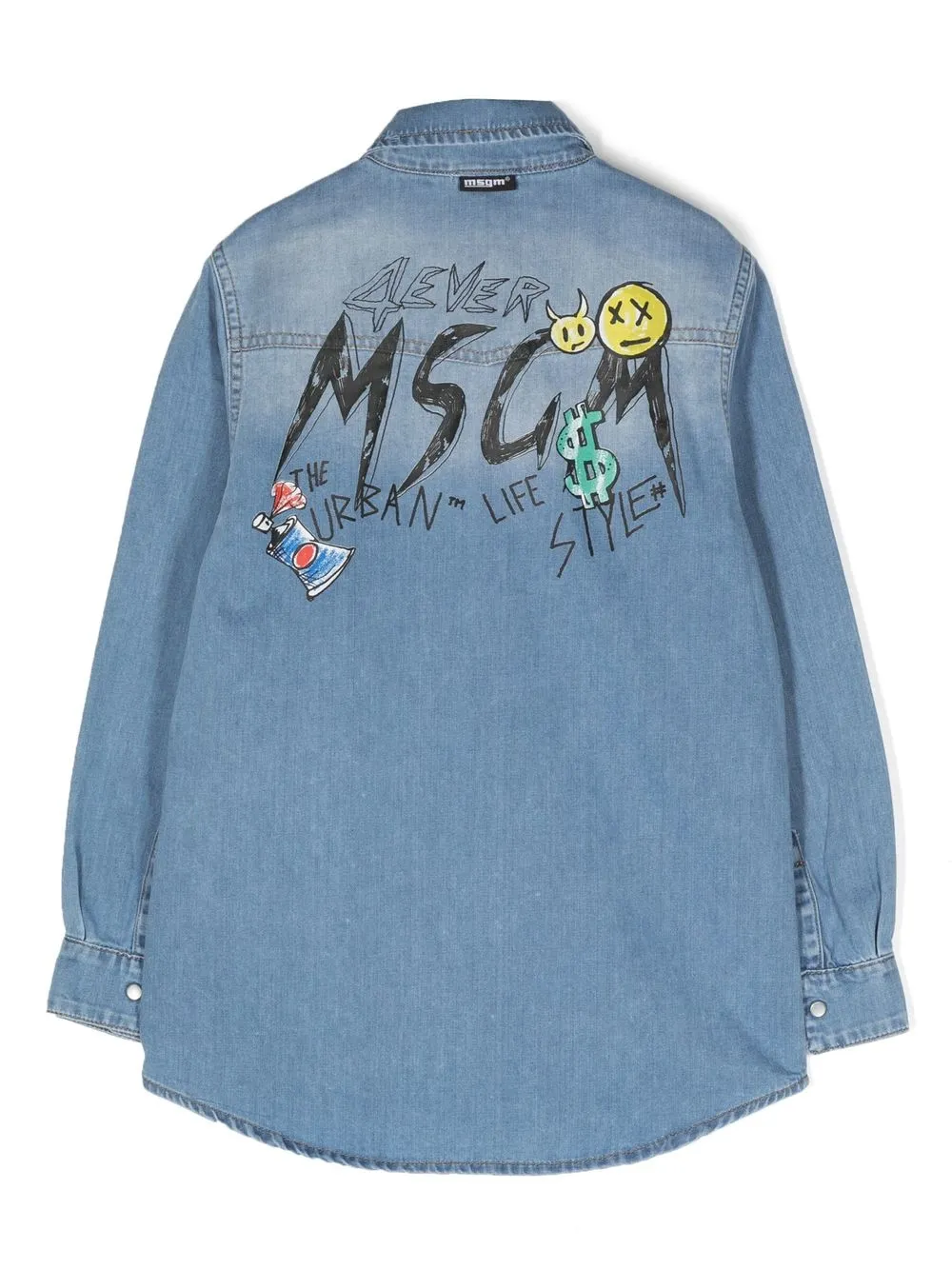 Джинсовая рубашка с логотипом MSGM Kids, синий