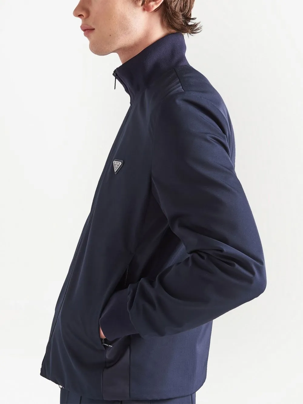 Темно-синий, переработанный полиамид, смесовый переработанный полиэстер, треугольный логотип, высокий воротник, застежка на молнии спереди, длинные рукава, два прорезных кармана по бокам и прямой подол. Ответственный выбор: Этот товар как минимум на 50% состоит из переработанных или повторно использованных материалов.