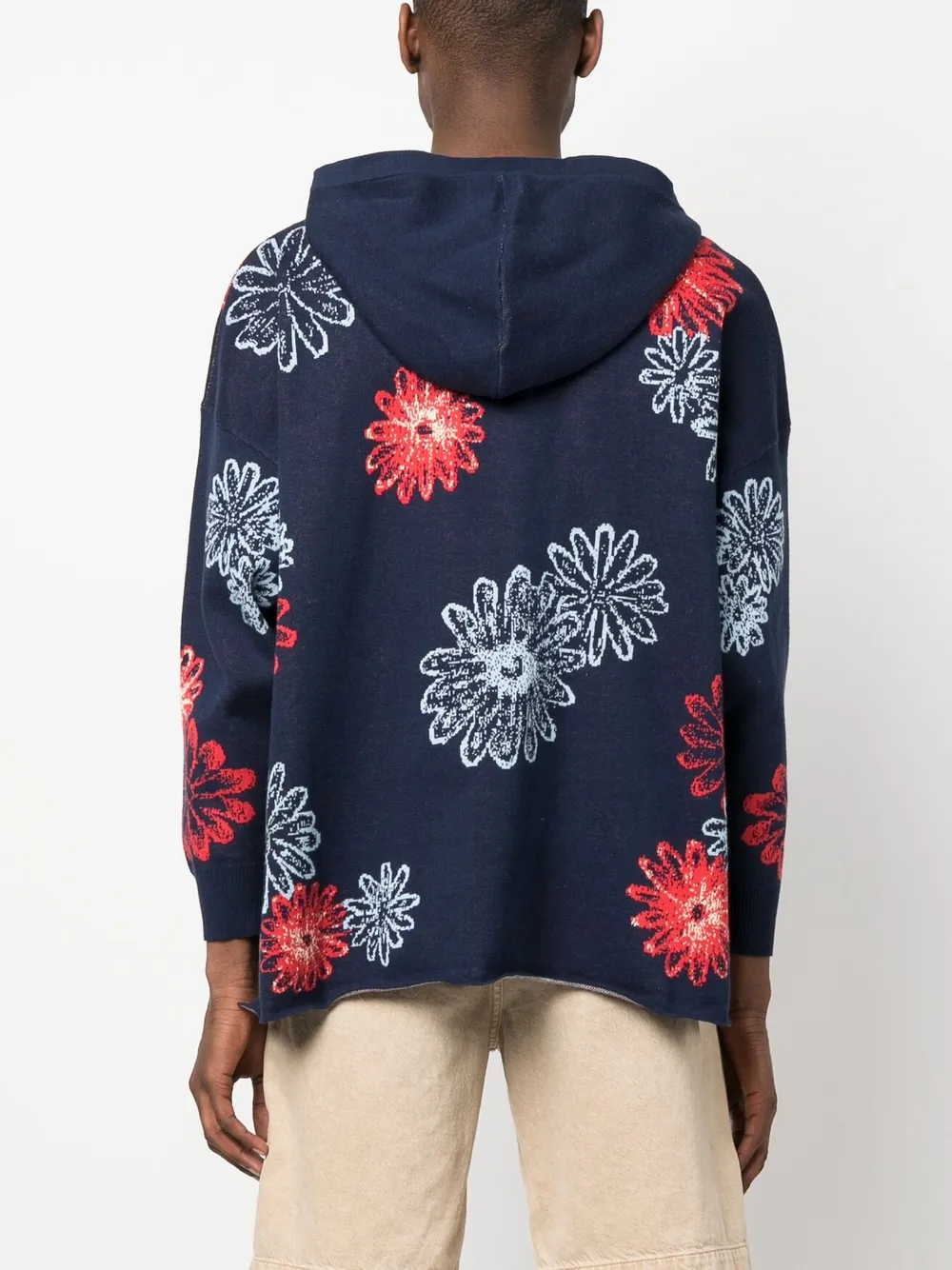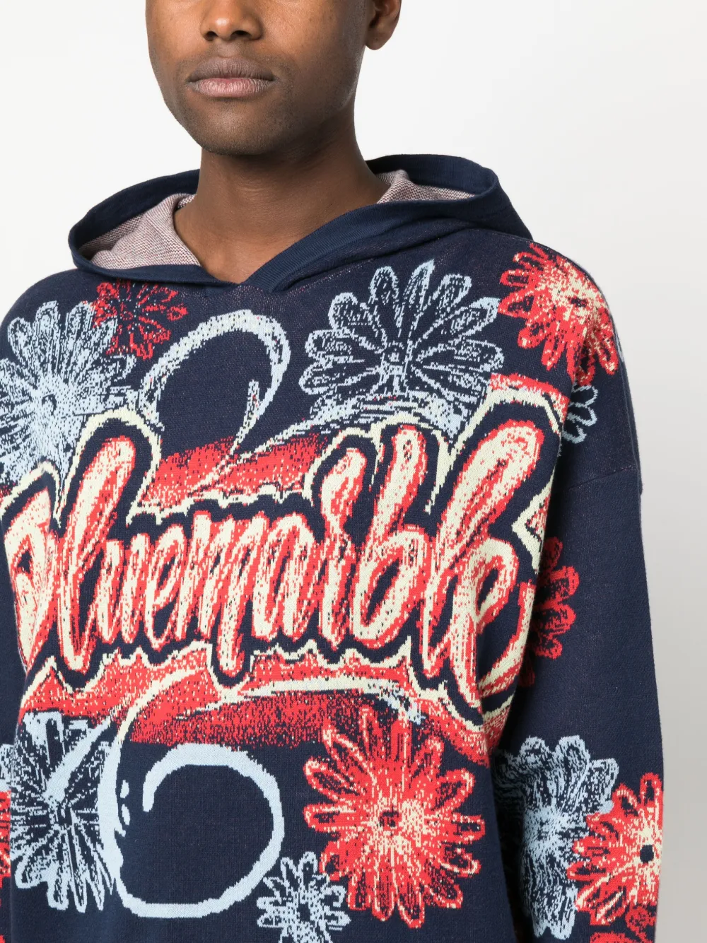 Темно-синий, разноцветный, смесовый хлопок, ткань пике, логотип спереди, сплошной графичный принт, классический капюшон, приспущенные плечи, длинные рукава и манжеты в рубчик.