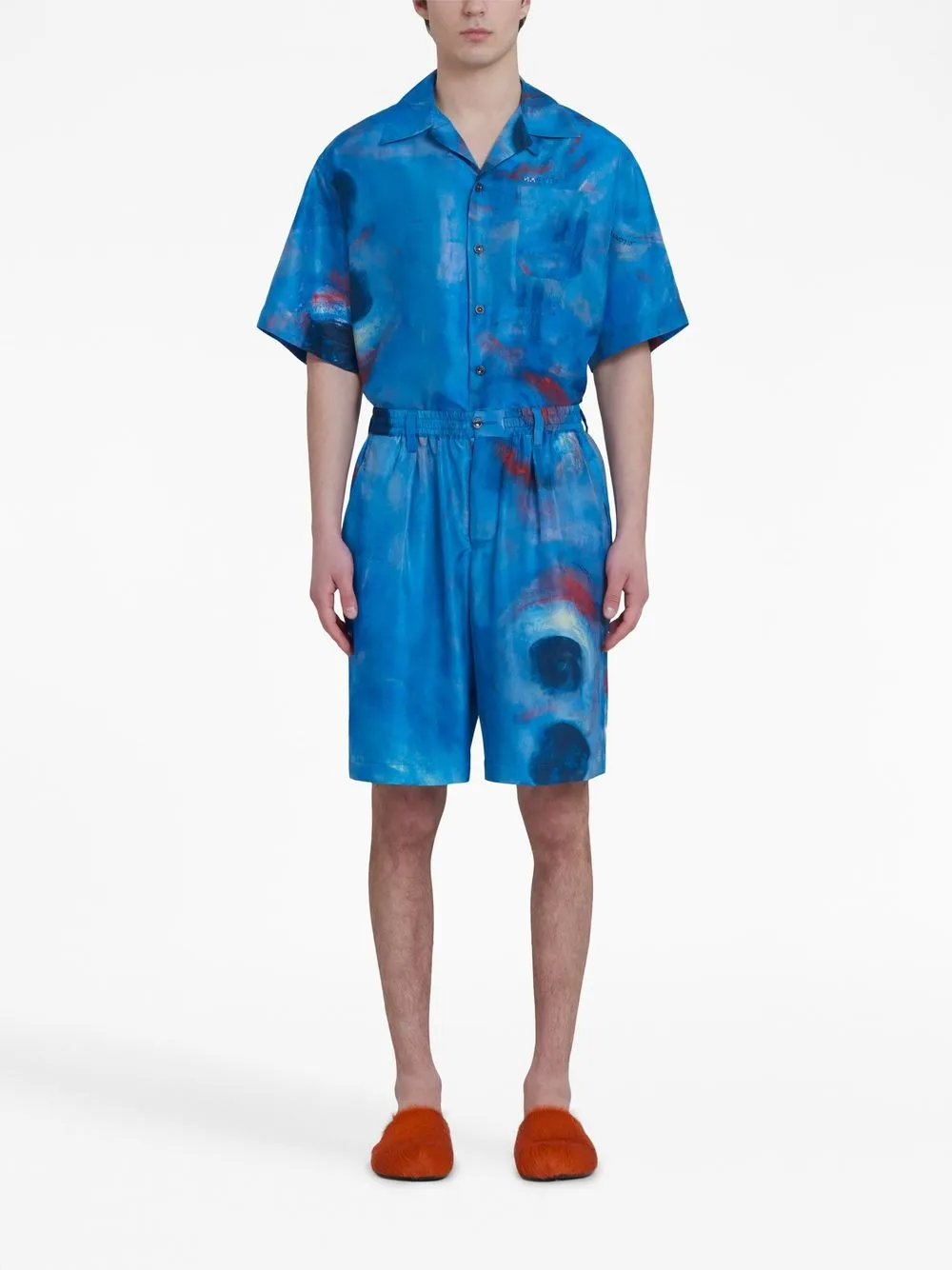 Шелковые шорты с принтом Marni, синий