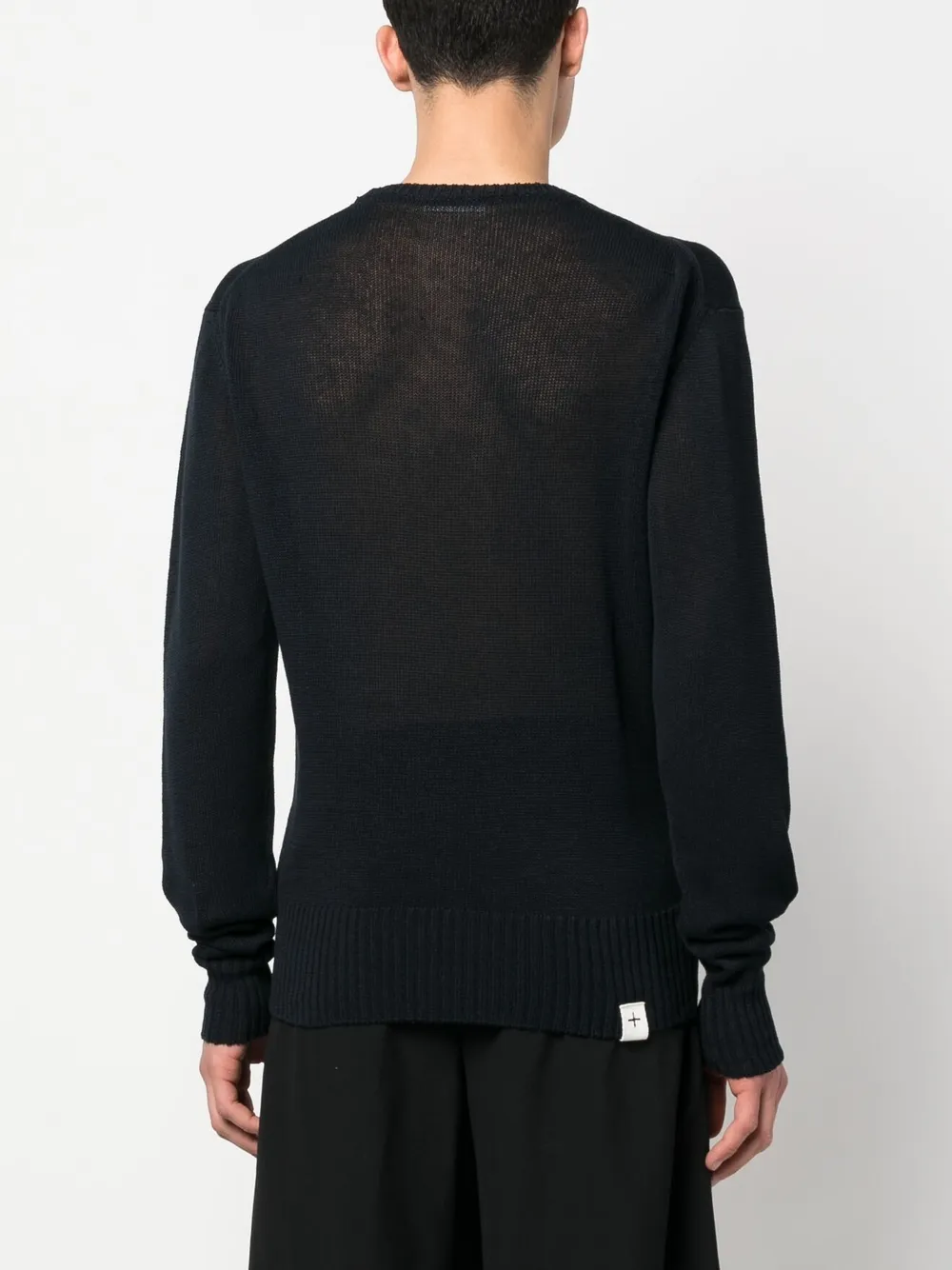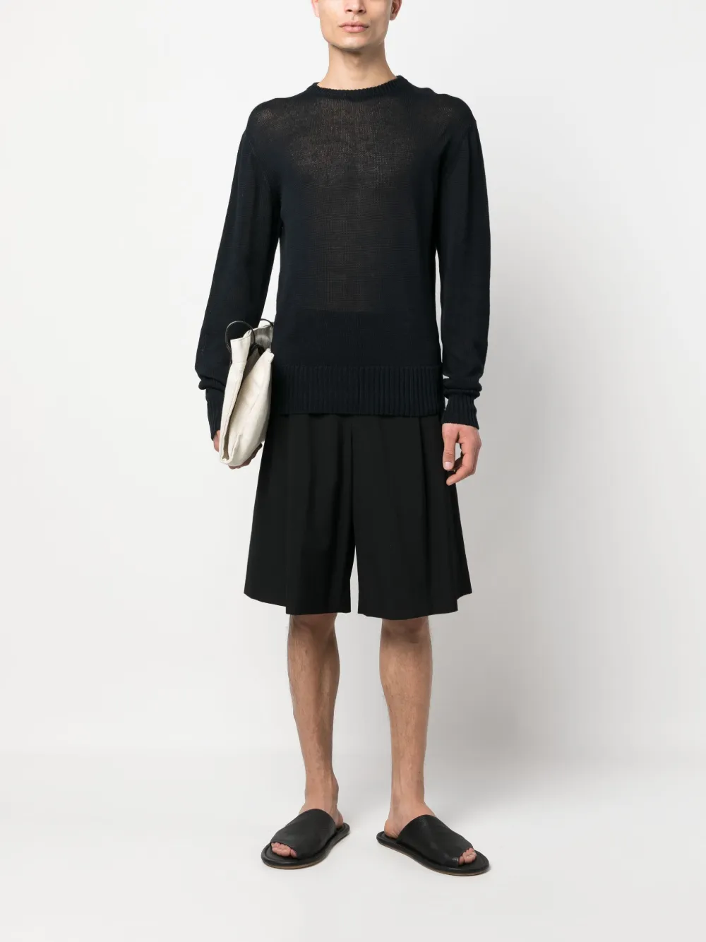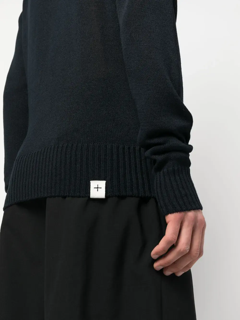 Темно-синий, хлопок, круглый вырез и длинные рукава.