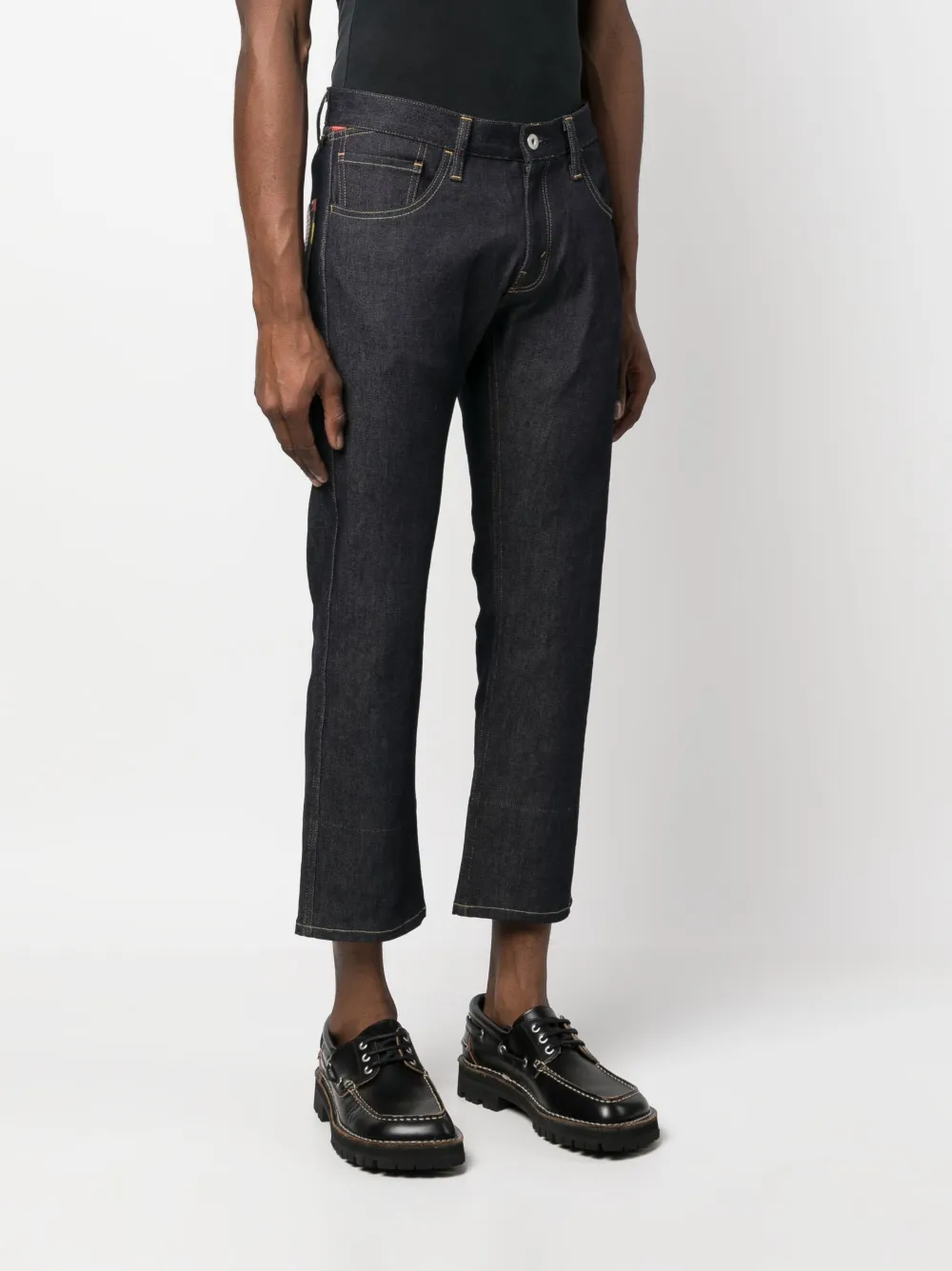 Укороченные джинсы с графичным принтом Junya Watanabe MAN, синий 49 809₽