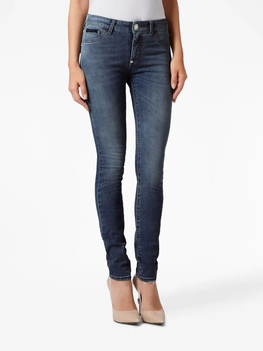 Джеггинсы с эффектом потертости Philipp Plein, синий