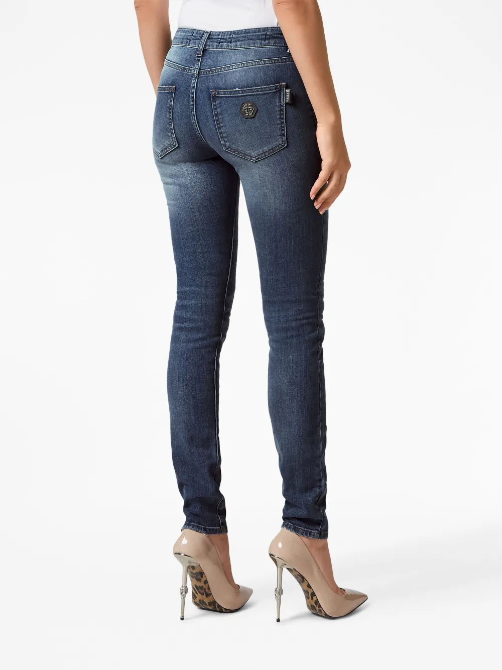 Джеггинсы с эффектом потертости Philipp Plein, синий 32 104₽