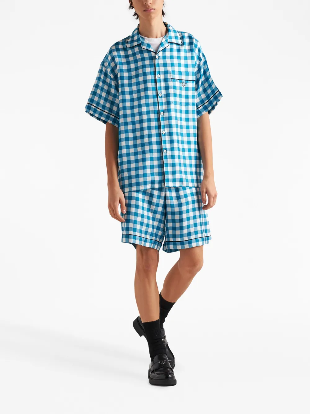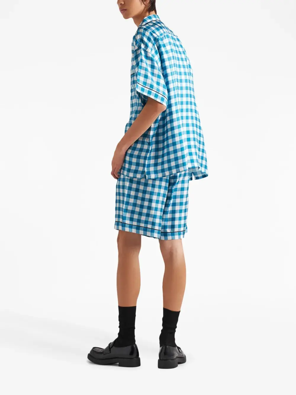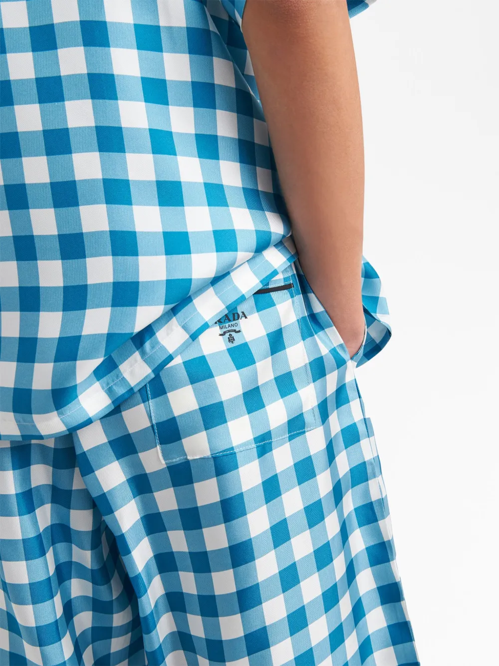 Шелковые шорты-бермуды в клетку Prada, синий