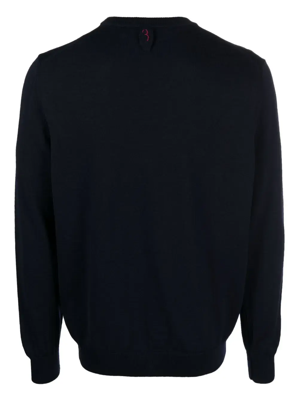 Черный, смесовая шерсть мериноса, вышитый логотип, трикотажный материал, круглый вырез, длинные рукава и вязаные края в рубчик.