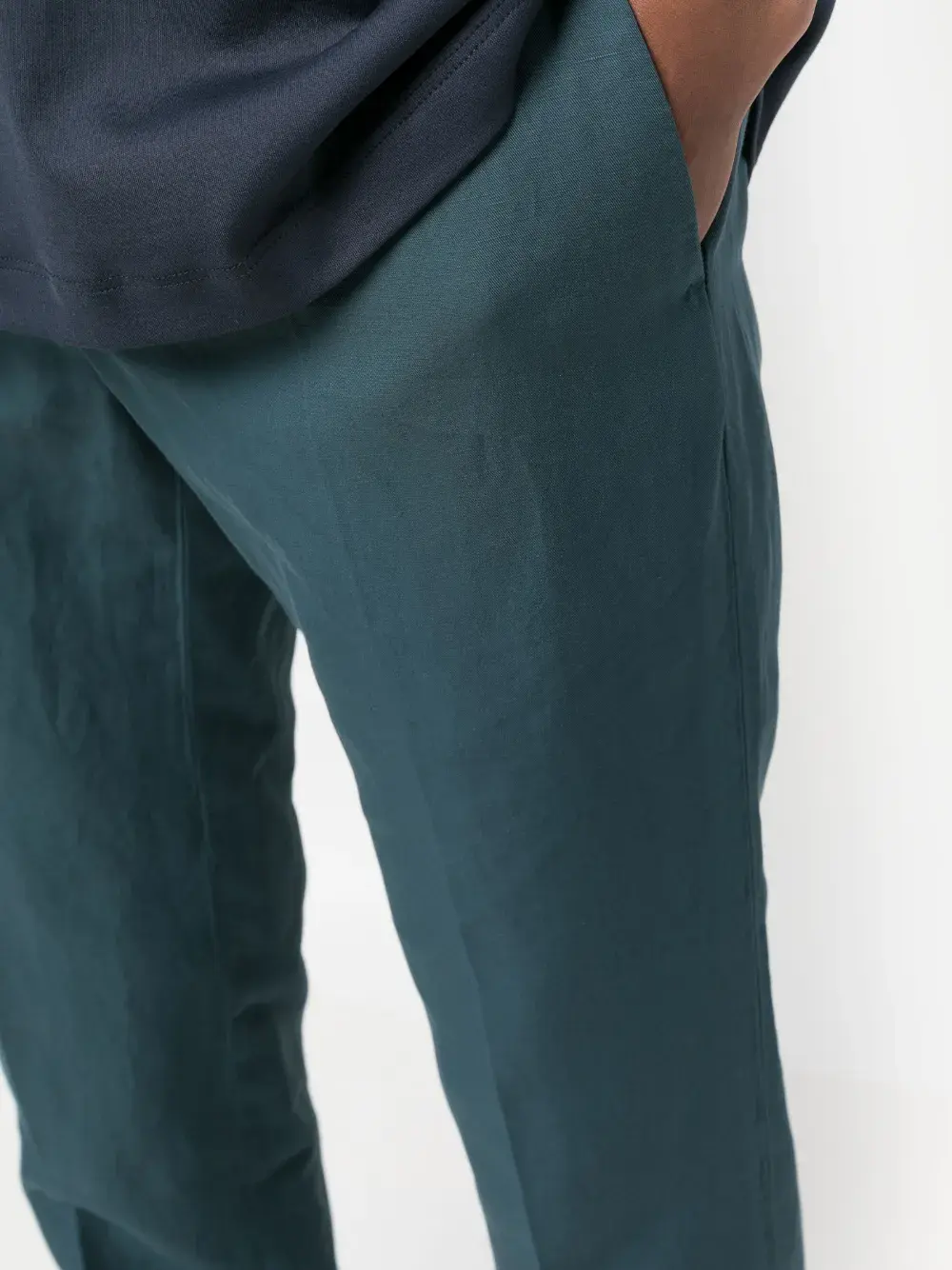 Подробнее о товаре: Сине-зеленый, смесовый лен, петли для ремня, средняя посадка, прямой крой, смещенная застежка спереди, два вшитых кармана по бокам и два прорезных кармана сзади. Этот товар как минимум на 50% состоит из материалов, которые признаны более безопасными для окружающей среды, и/или произведены с использованием методов, которые помогают сократить потребление воды и химических веществ. Узнать больше о том, какие товары получают отметку «Ответственный выбор», можно из материала «Как мы оцениваем экологичность и этичность».