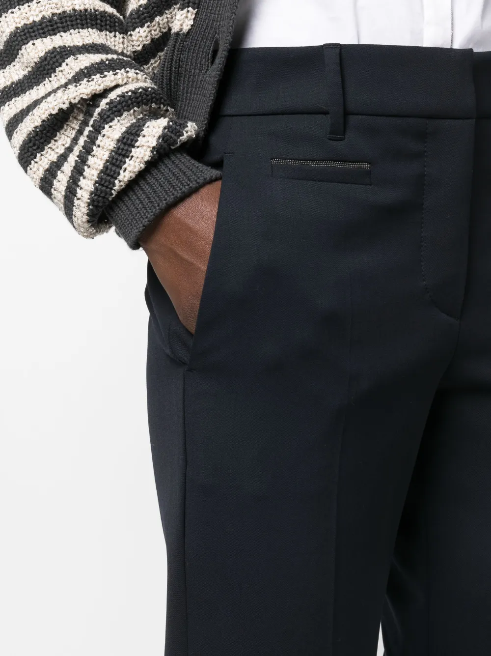 Укороченные брюки с декором Monili Brunello Cucinelli, синий 90 509₽