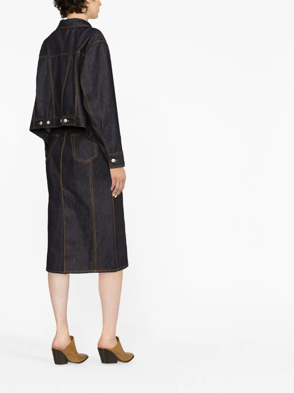 Джинсовая юбка миди с контрастной строчкой Alexander McQueen, синий