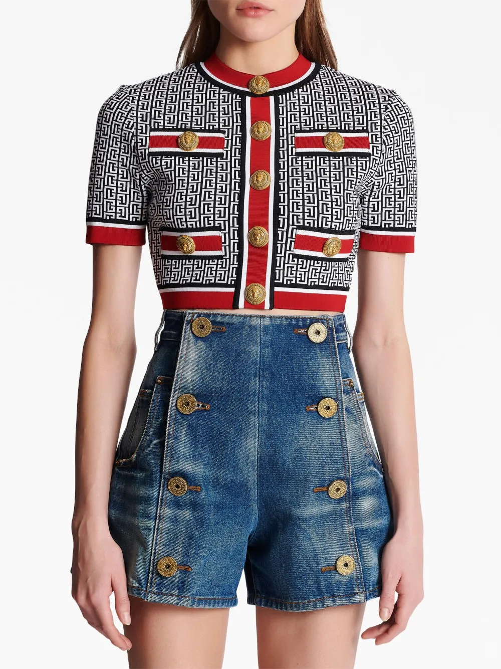 Подробнее о товаре: Белый/черный, красный, узор с изображением монограммы, трикотажный материал, круглый вырез, золотистые пуговицы с тиснением, застежка на молнии сзади, короткие рукава, подол и манжеты в рубчик, прямой подол и укороченная длина. Этот товар как минимум на 50% состоит из сертифицированной древесины. Это гарантирует, что сырье заготовлено в ответственных лесных хозяйствах, которые минимизируют вырубку лесов, обеспечивают справедливую заработную плату и условия труда, сохраняют биоразнообразие и уважают права локальных сообществ. Узнать больше о том, какие товары получают отметку «Ответственный выбор», можно из материала «Как мы оцениваем экологичность и этичность».