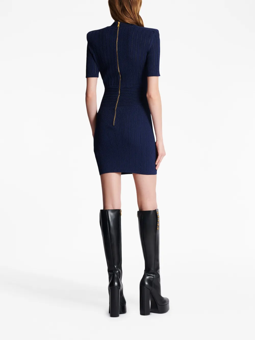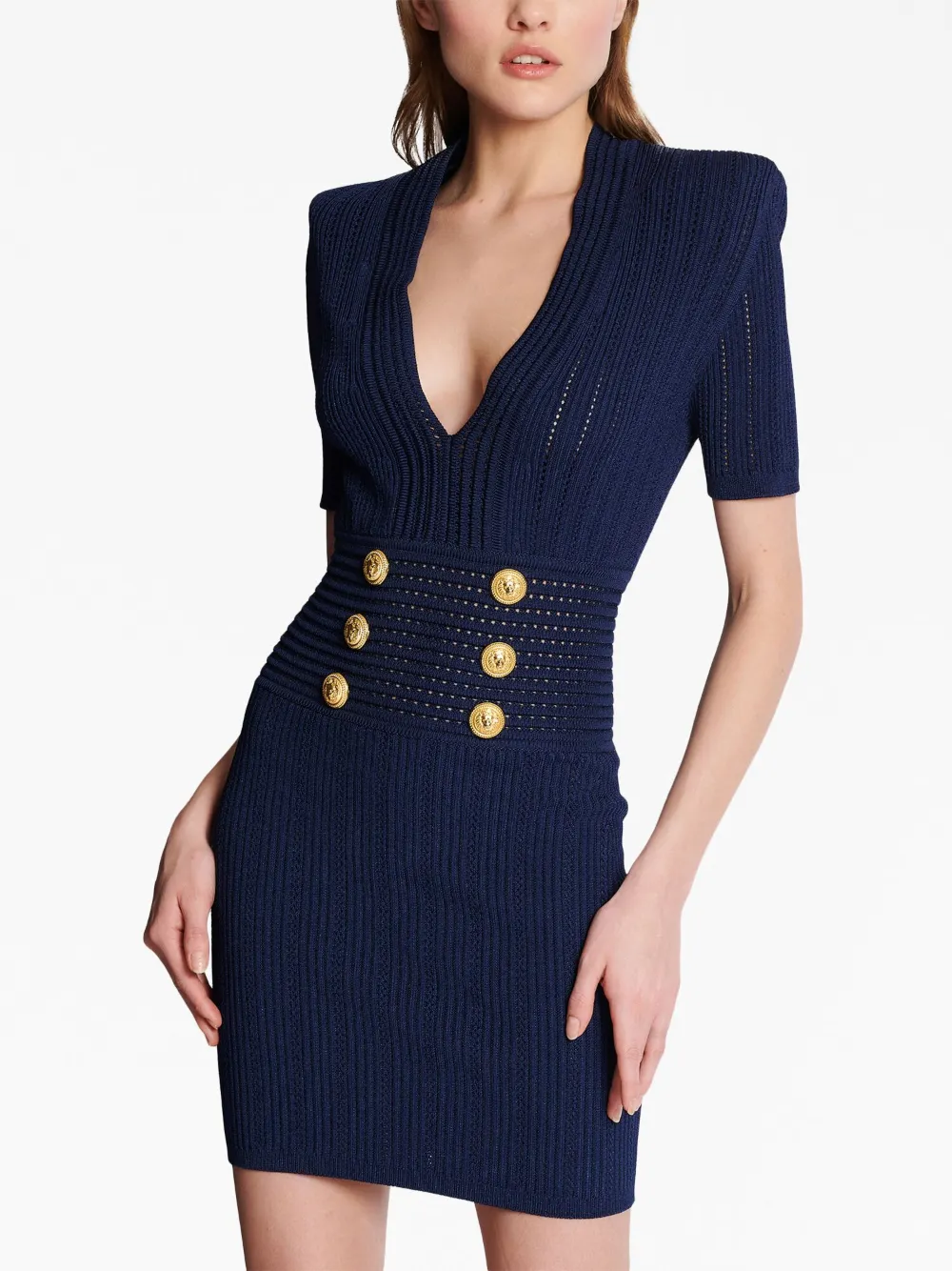 Трикотажное платье с V-образным вырезом BALMAIN, синий