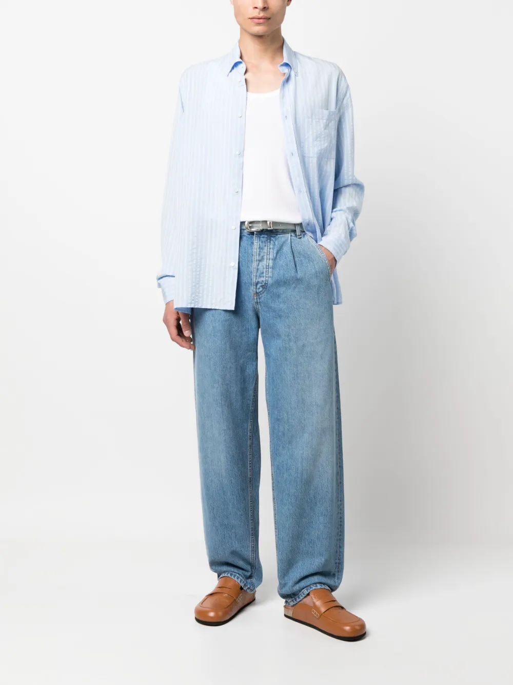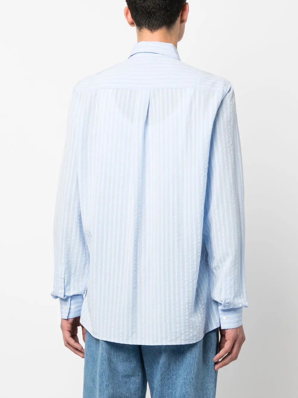 Подробнее о товаре: Синий/белый, узор в вертикальную полоску, классический воротник, застежка на пуговицах спереди, нагрудный накладной карман, длинные рукава, манжеты на пуговицах и закругленный подол. Этот товар как минимум на 50% состоит из материалов, которые признаны более безопасными для окружающей среды, и/или произведены с использованием методов, которые помогают сократить потребление воды и химических веществ. Узнать больше о том, какие товары получают отметку «Ответственный выбор», можно из материала «Как мы оцениваем экологичность и этичность».