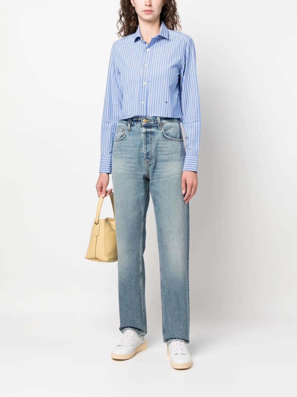 Средняя посадка, петли для ремня, пять карманов, нашивка с логотипом сзади, прямой крой, широкий крой и прямой подол. Узнать больше о том, какие товары получают отметку «Ответственный выбор», можно из материала «Как мы оцениваем экологичность и этичность».