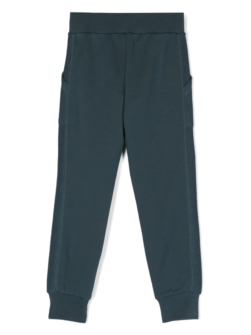 Темно-синий, хлопок, махровый эффект, техника пэчворк, средняя посадка, эластичный пояс, логотип спереди, два накладных кармана по бокам и эластичные манжеты.