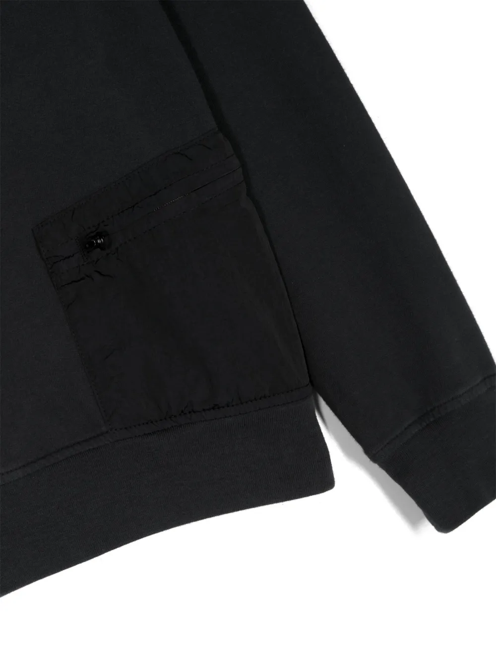 Темно-синий, белый, хлопок, логотип спереди, круглый вырез, приспущенные плечи, длинные рукава, прямой подол и маленький карман на молнии.