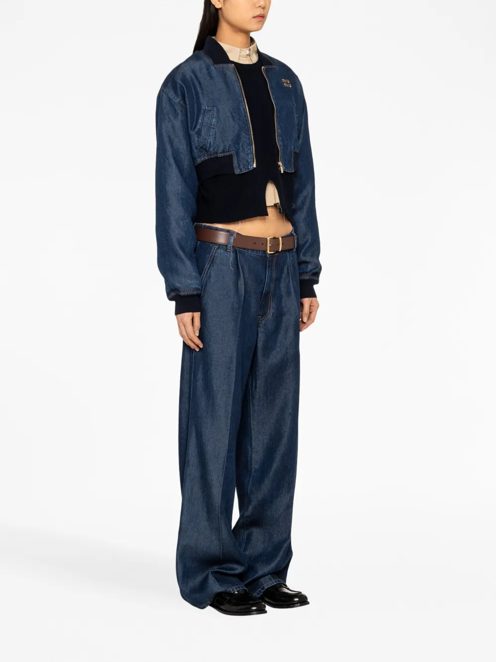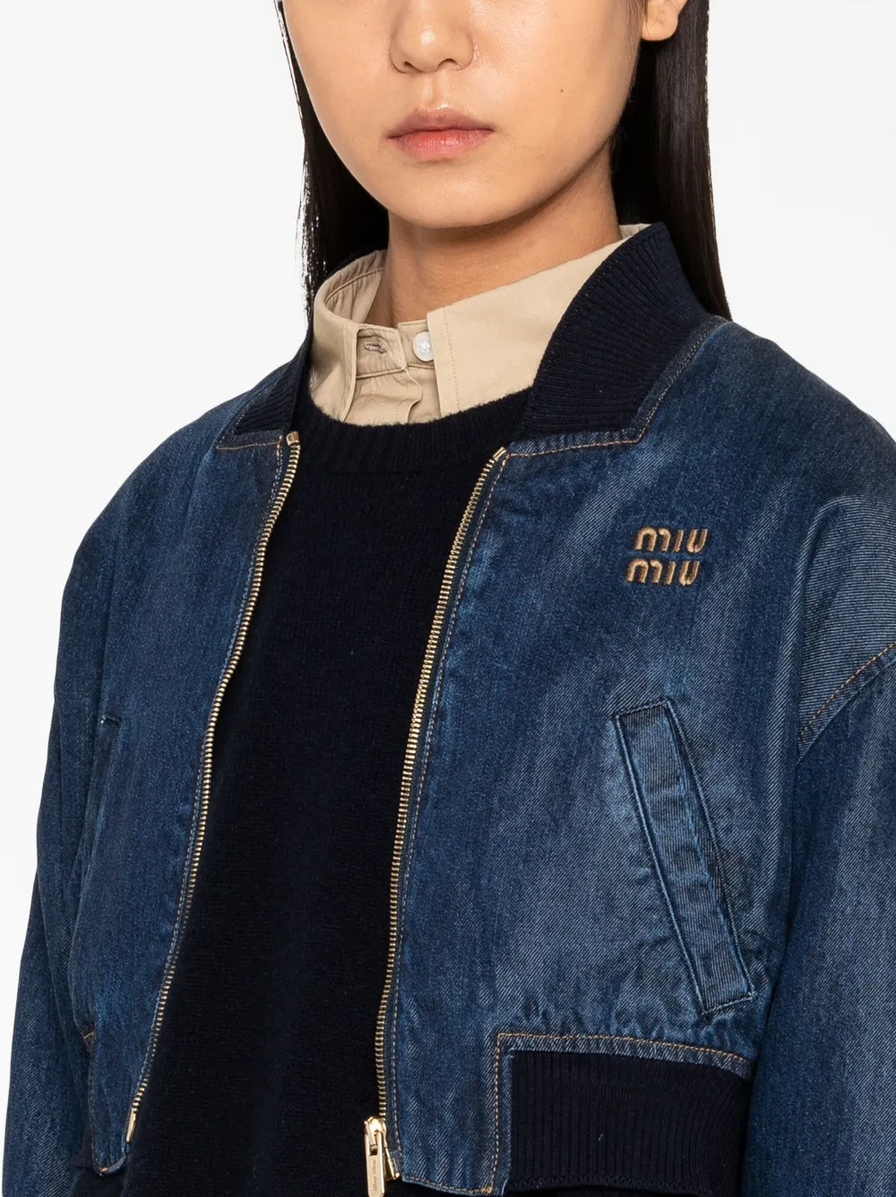 Джинсовая куртка с вышитым логотипом MIU MIU, синий