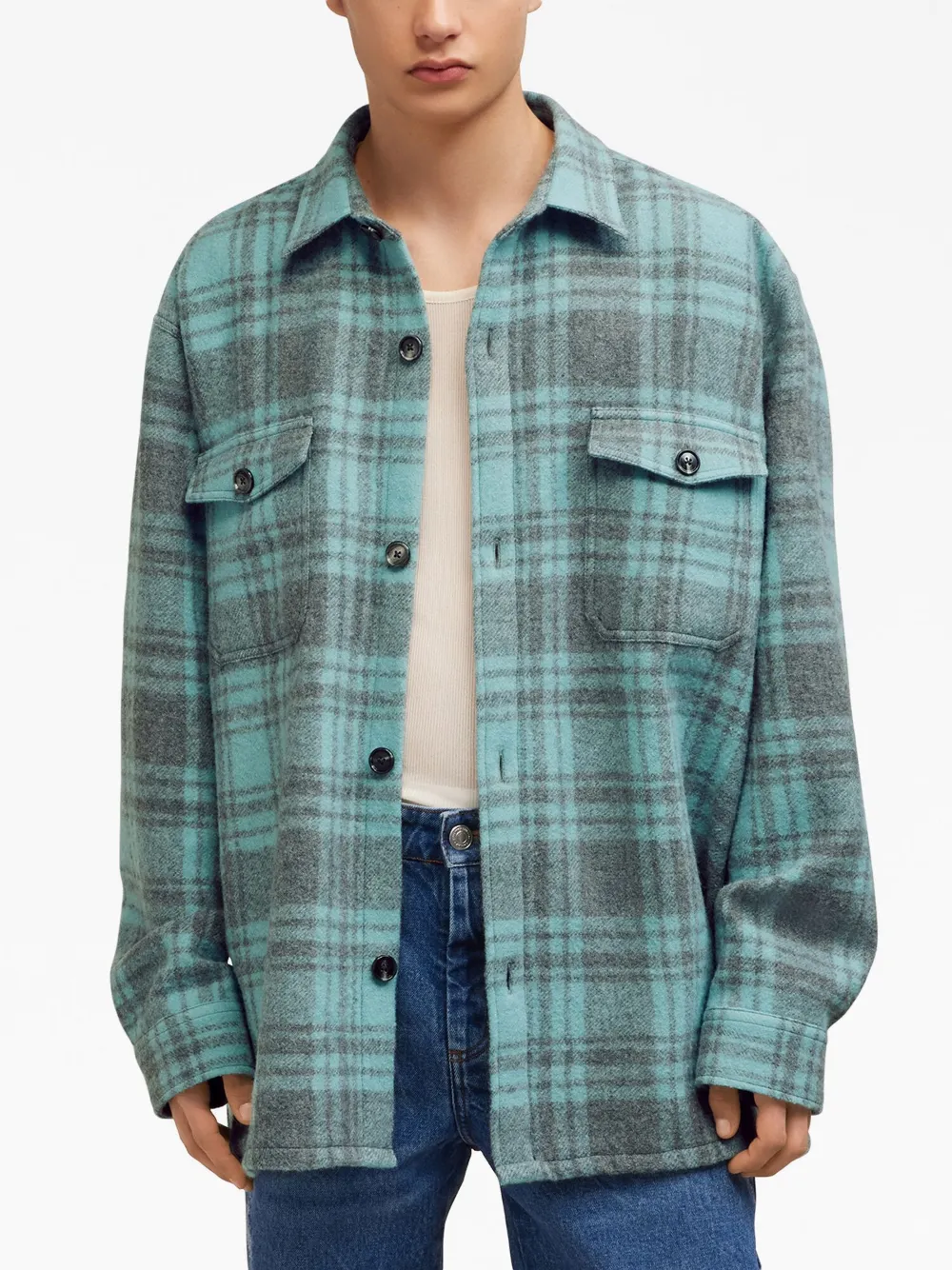 Шерстяная куртка-рубашка в клетку AMI Paris, синий