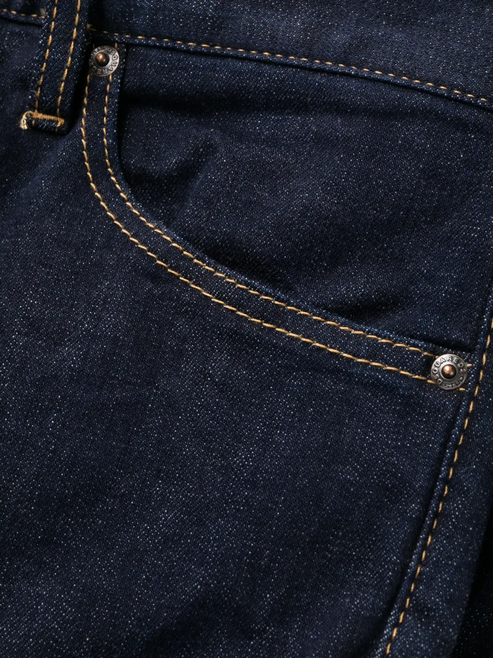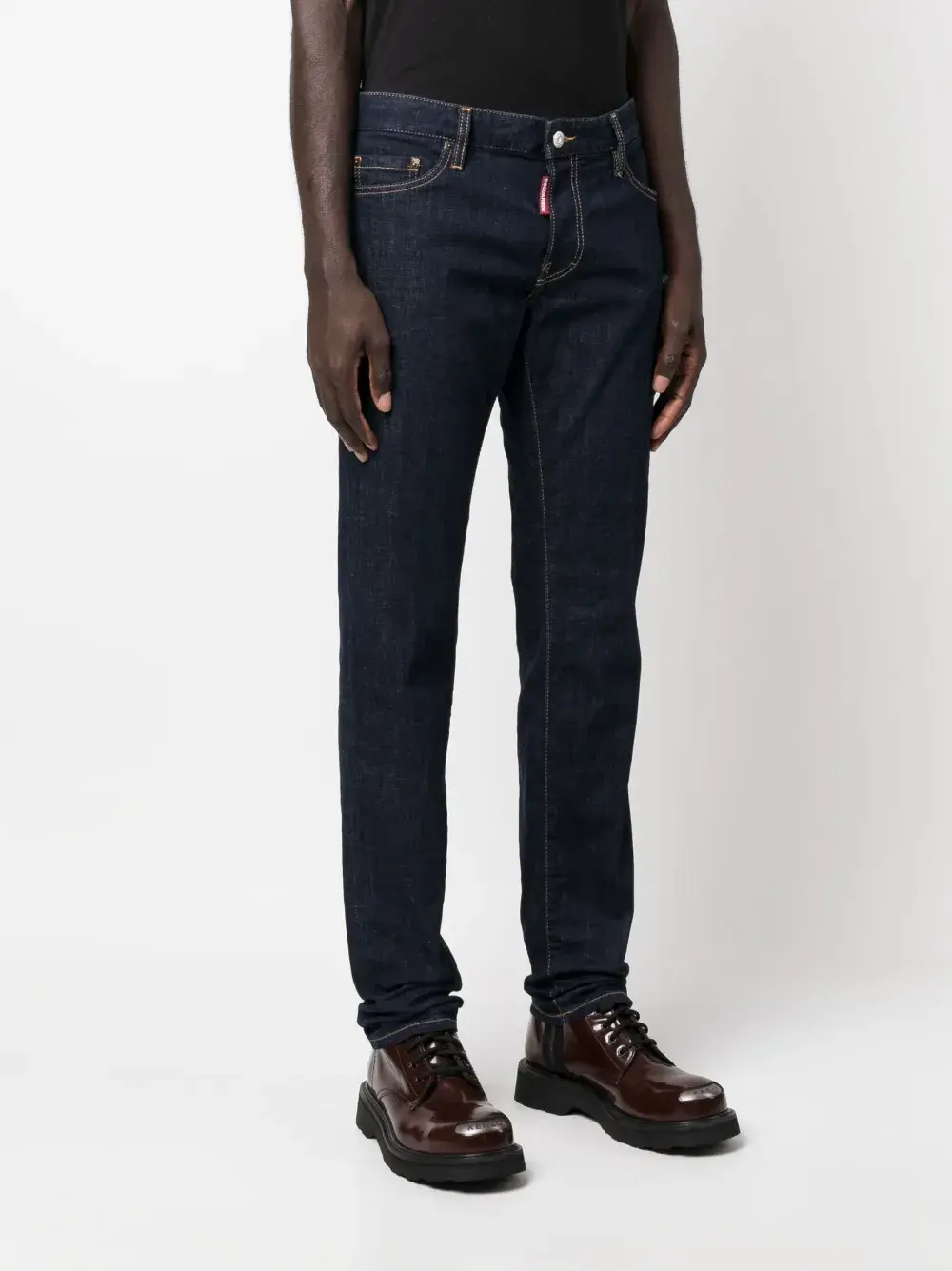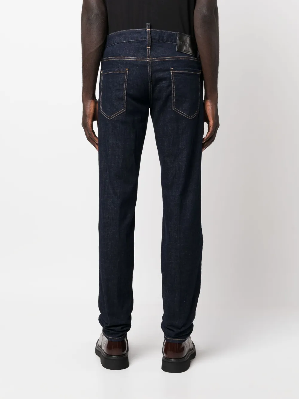 Темно-синий, хлопок, нашивка с логотипом спереди, нашивка с логотипом сзади, контрастная строчка, петли для ремня, пять карманов и прямой крой.