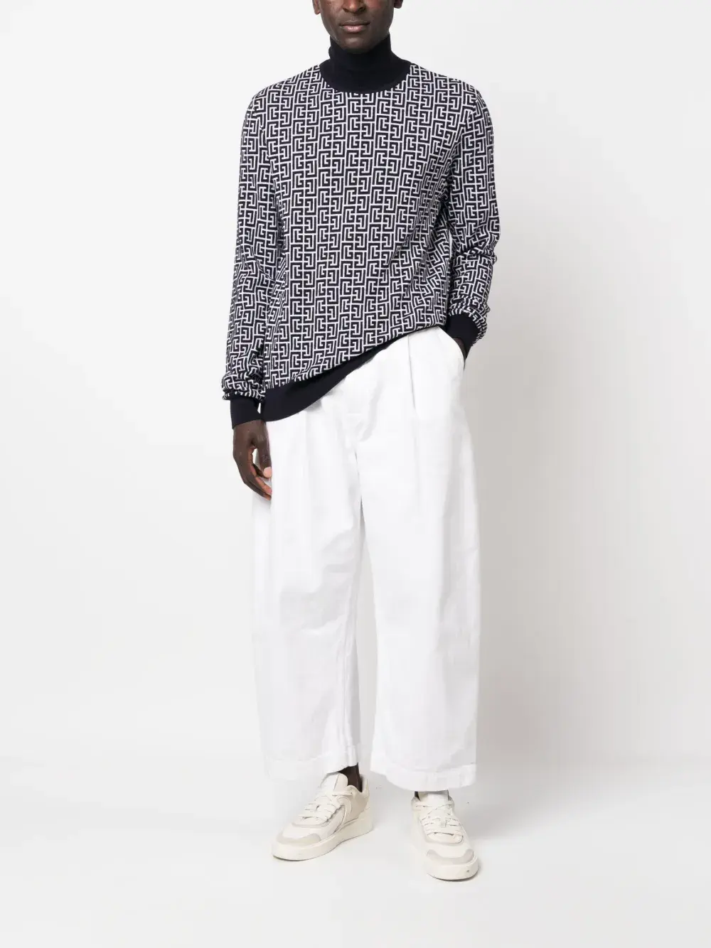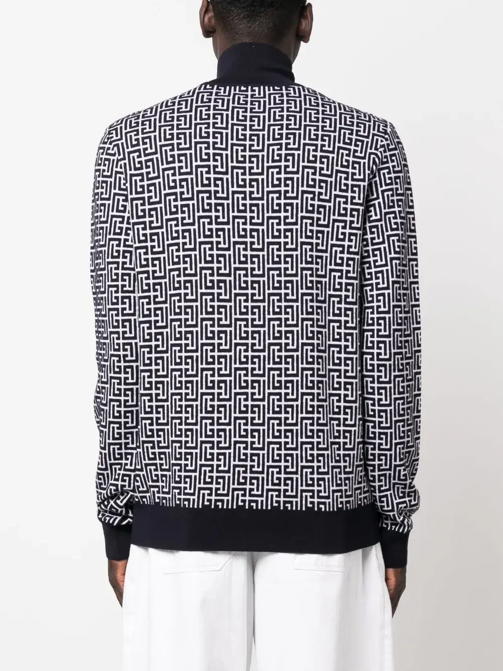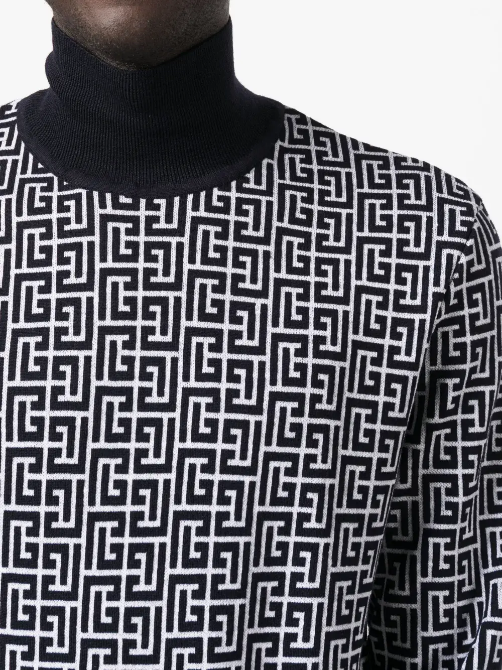 Джемпер с монограммой и высоким воротником BALMAIN, синий