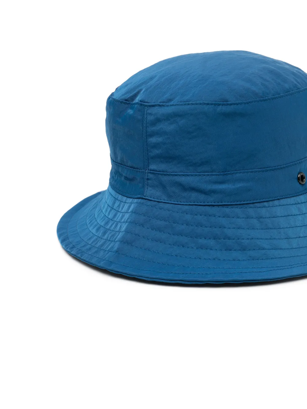 Кобальтово-синий, смесовый хлопок, вентиляционные отверстия, плоская тулья и узкие опущенные поля.