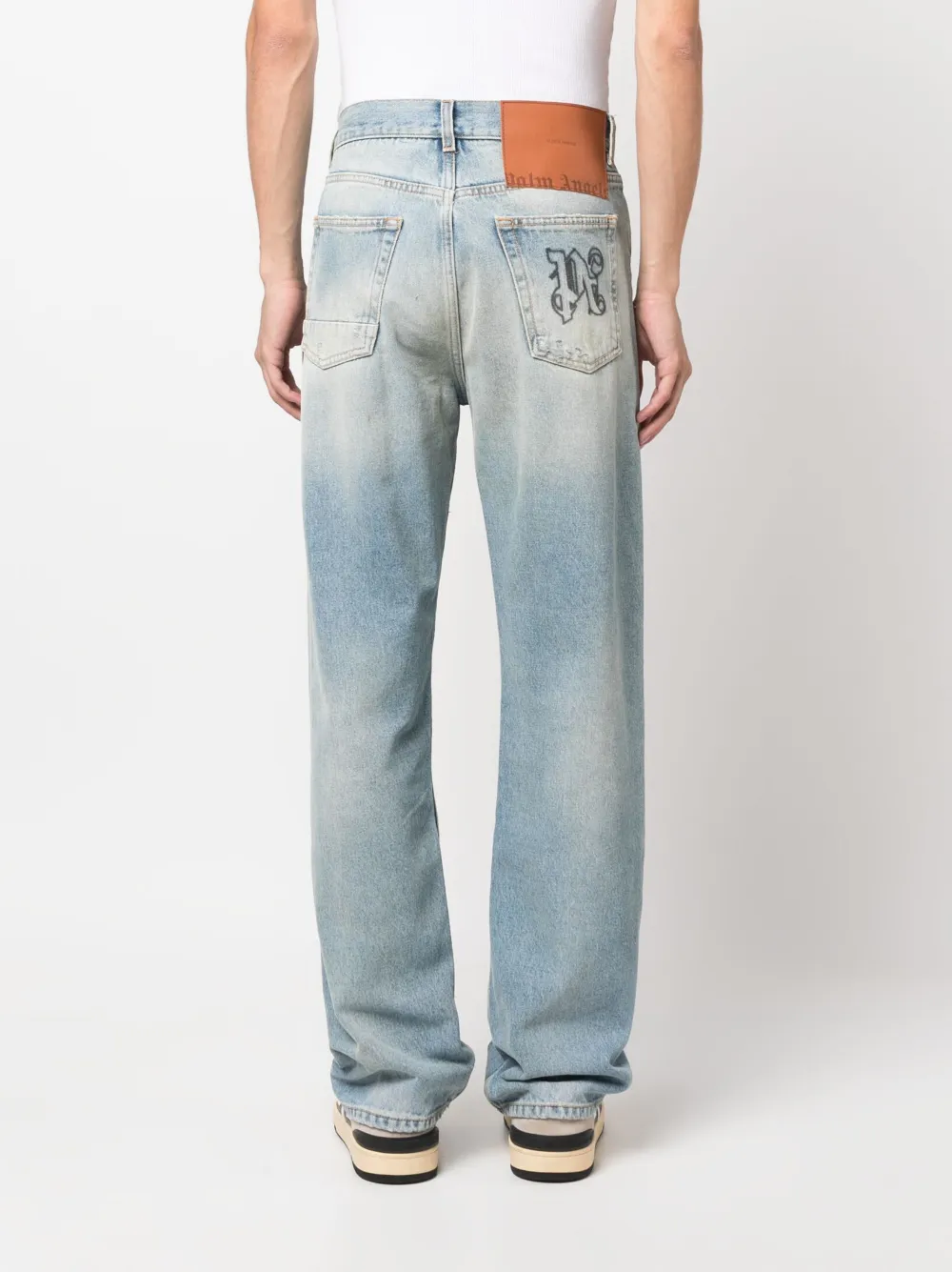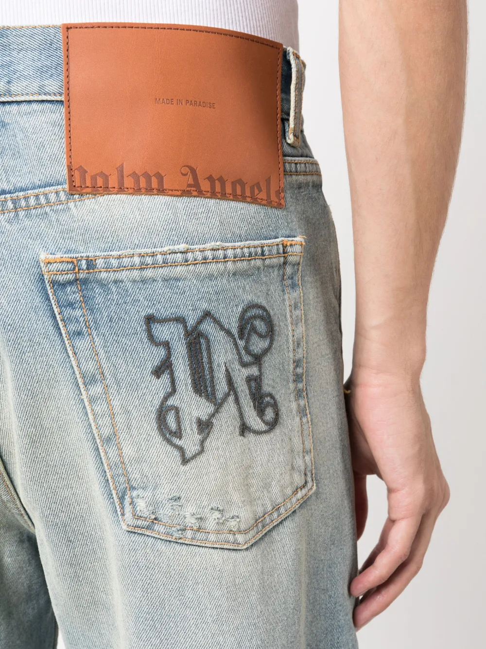 Прямые джинсы с эффектом потертости PALM ANGELS, синий
