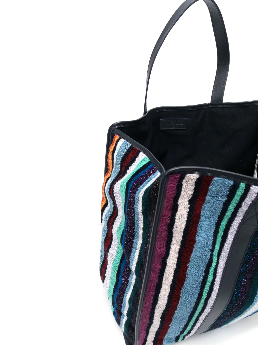 Синий, разноцветный, смесовый хлопок, махровый эффект, люрекс, принт в вертикальную полоску, две верхние ручки, дизайн с открытым верхом, основное отделение, нашивка с логотипом внутри и внутренние прорезные карманы. Эта модель, как и другие вещи Missoni, выполнена вручную, поэтому товар может незначительно отличаться от фотографий на сайте. В комплект входит мешок-пыльник для хранения.