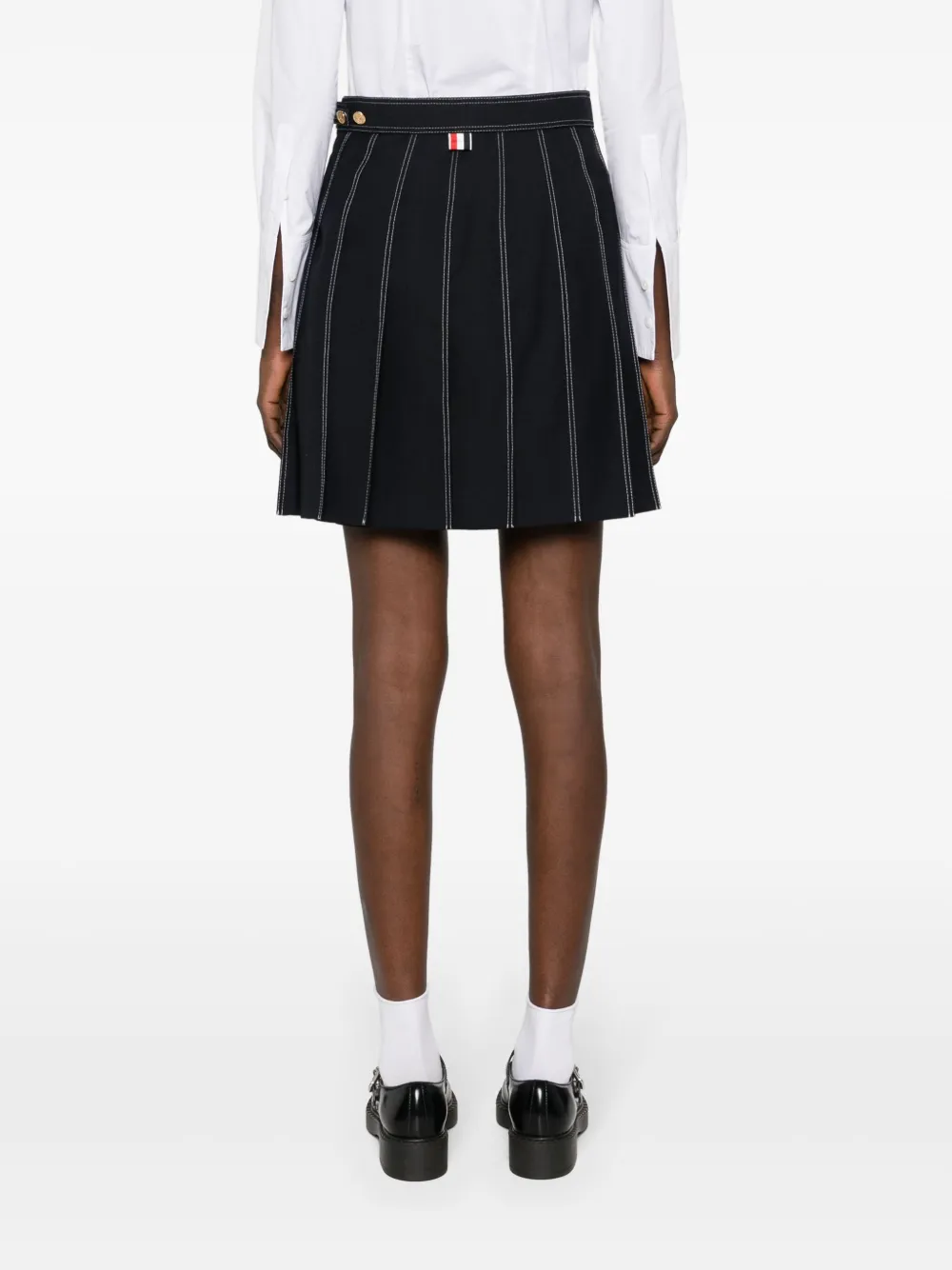Полосатая мини-юбка со складками THOM BROWNE, синий