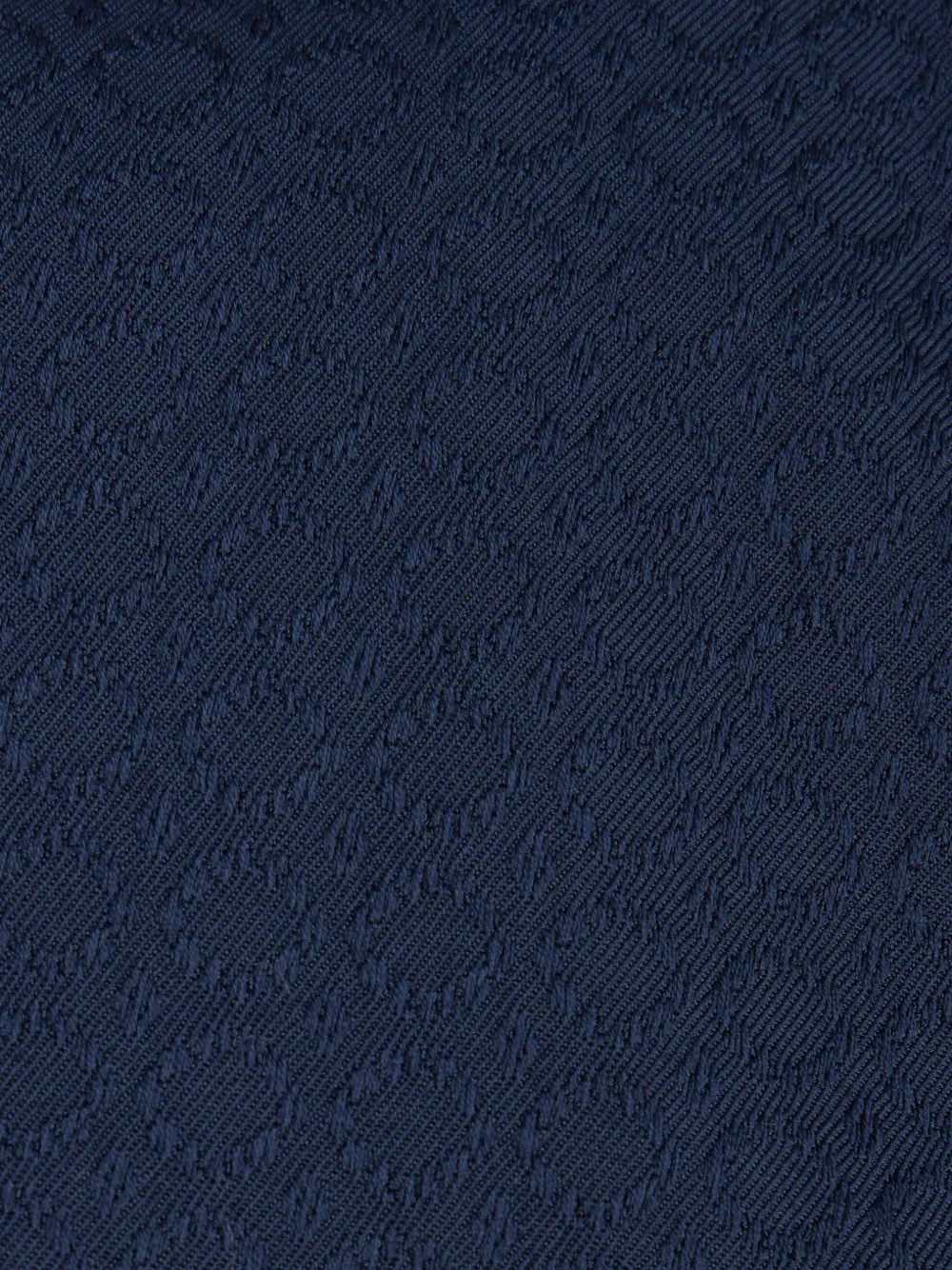 Темно-синий, смесовый хлопок, зазубренные лацканы, прорезной карман на груди, застежка на пуговицах спереди, два нагрудных кармана с клапанами, обтянутые тканью пуговицы, длинные рукава, манжеты на пуговицах и прямой подол.