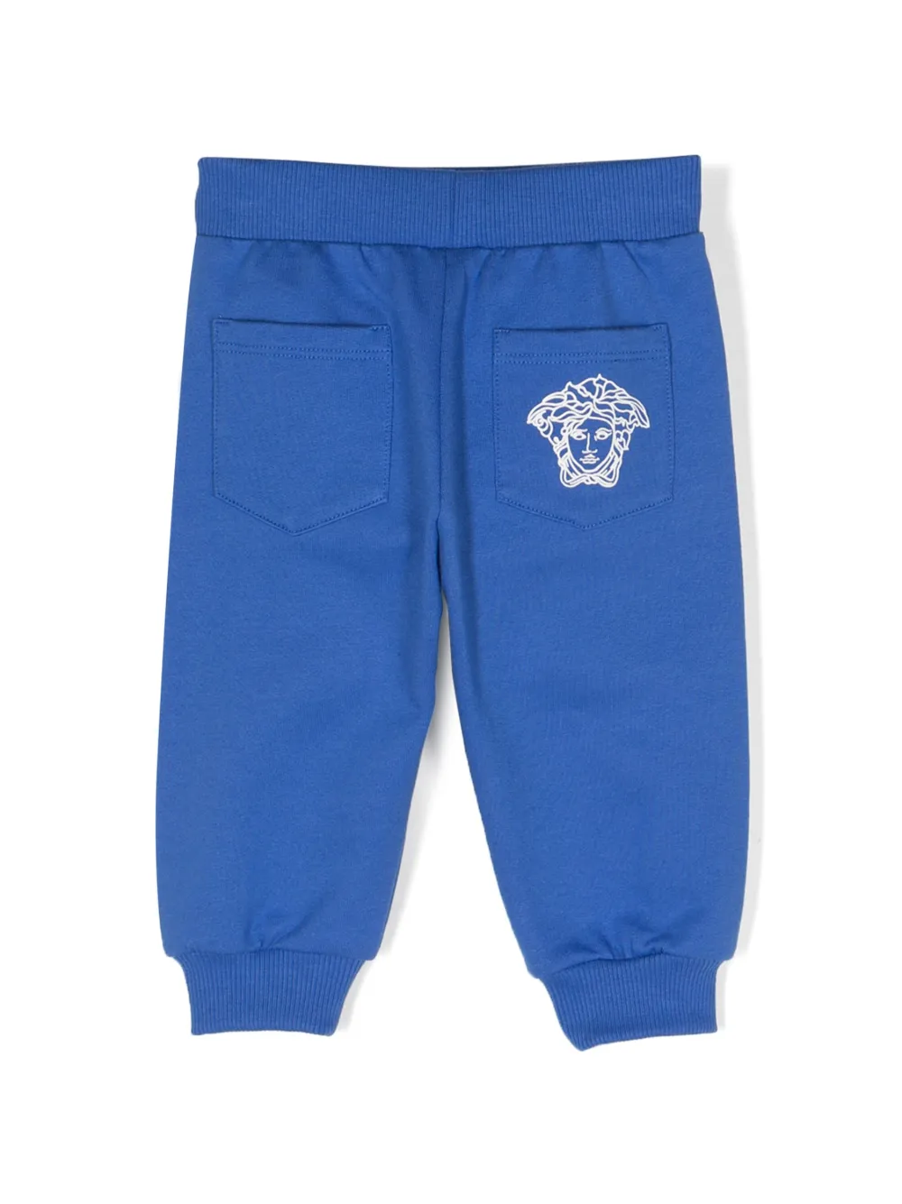 Синий/белый, хлопок, узор Medusa Head, знаковый принт Greca, эластичный пояс, два накладных кармана сзади и эластичные манжеты.