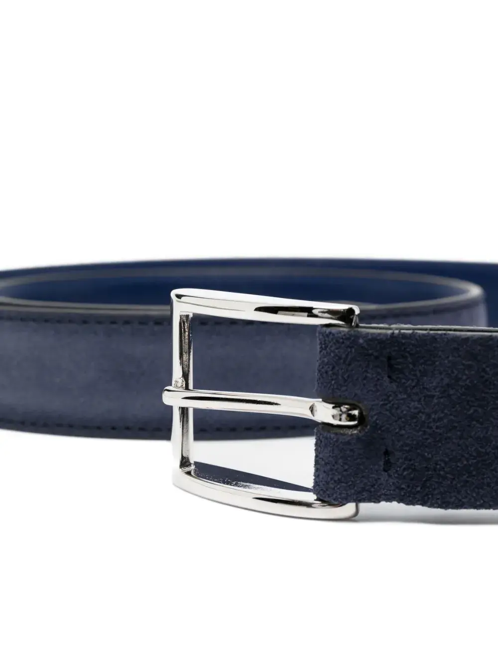 Темно-синий, замша из телячьей кожи, застежка на серебристой пряжке, прорезанные отверстия и регулируемый дизайн.