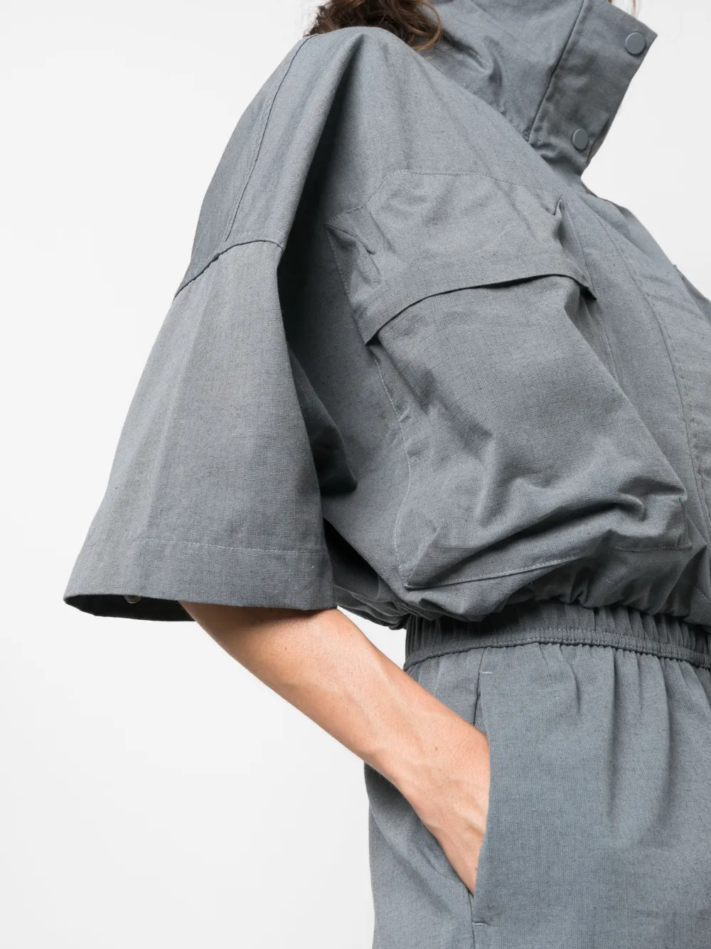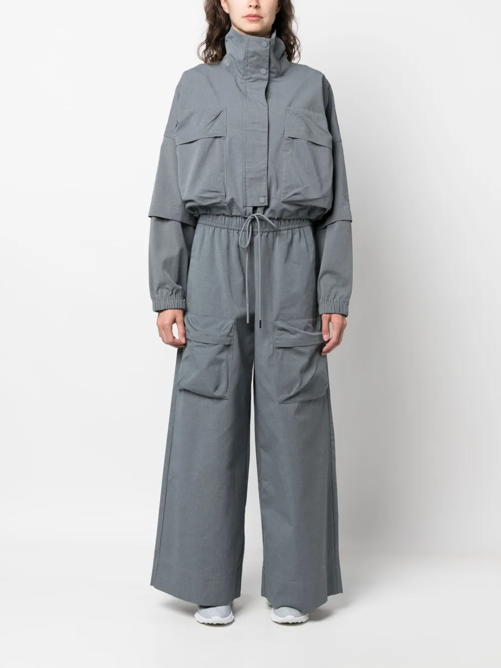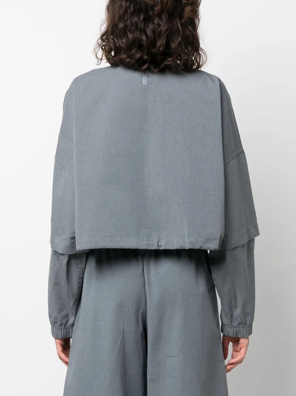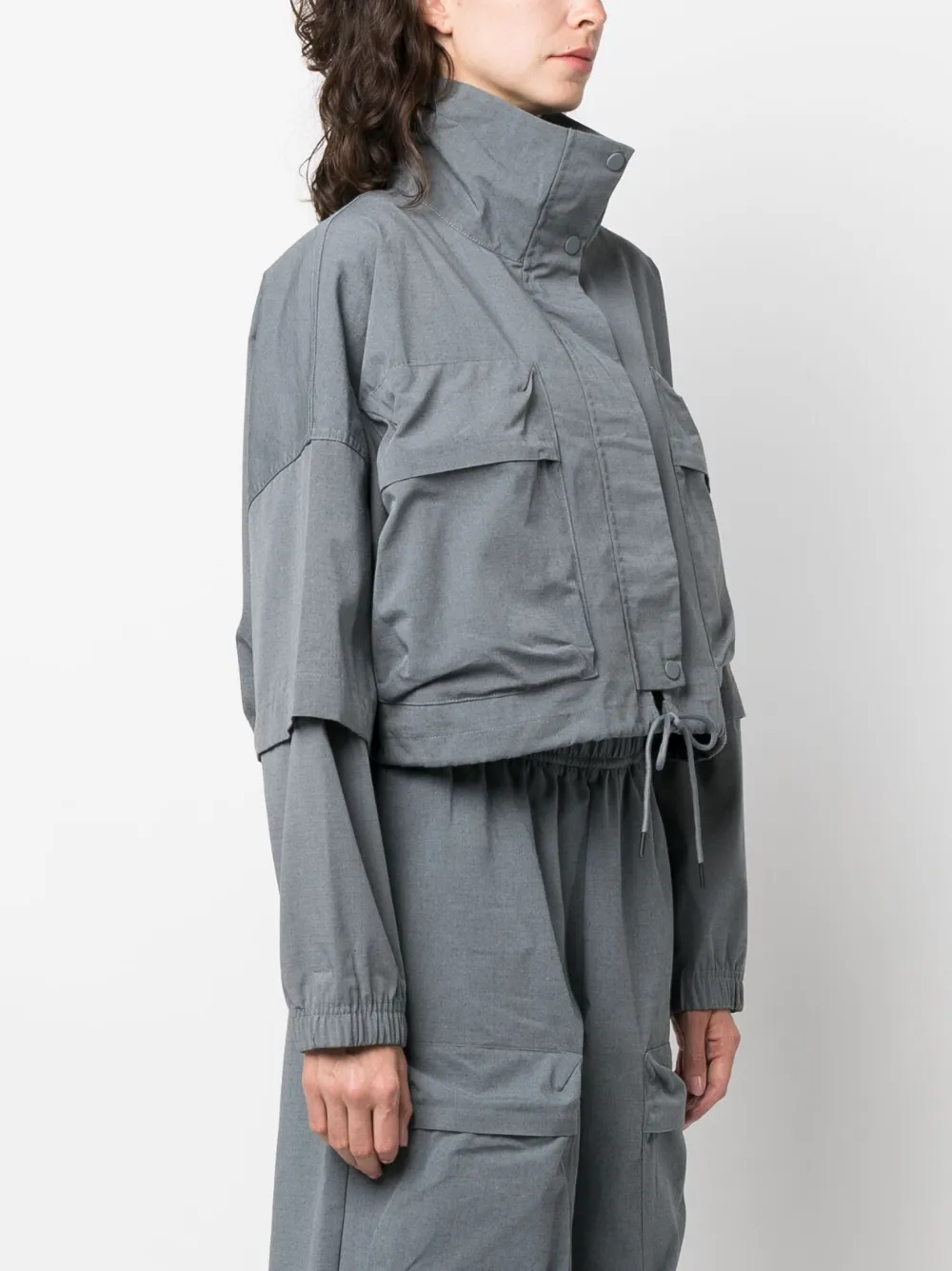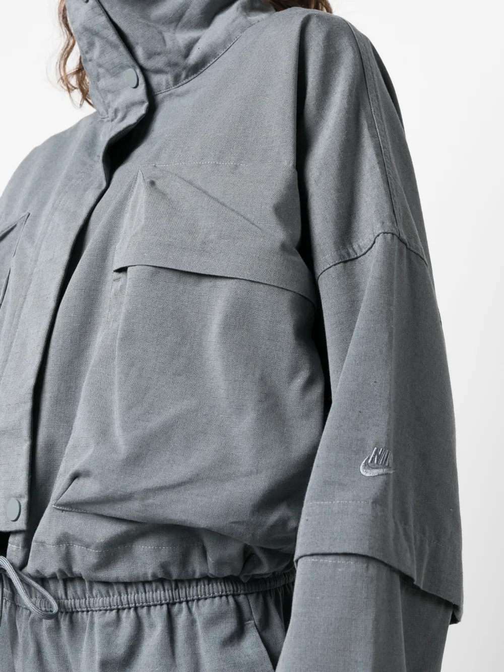 Светло-серый, смесовый хлопок, рипстоп, высокий воротник, застежка на пуговицах спереди, длинные рукава, съемные рукава, эластичные манжеты, подол с кулиской, укороченная длина и два нагрудных кармана с клапанами. Этот товар как минимум на 50% состоит из переработанных или повторно использованных материалов. Узнать больше о том, какие товары получают отметку «Ответственный выбор», можно из материала «Как мы оцениваем экологичность и этичность».