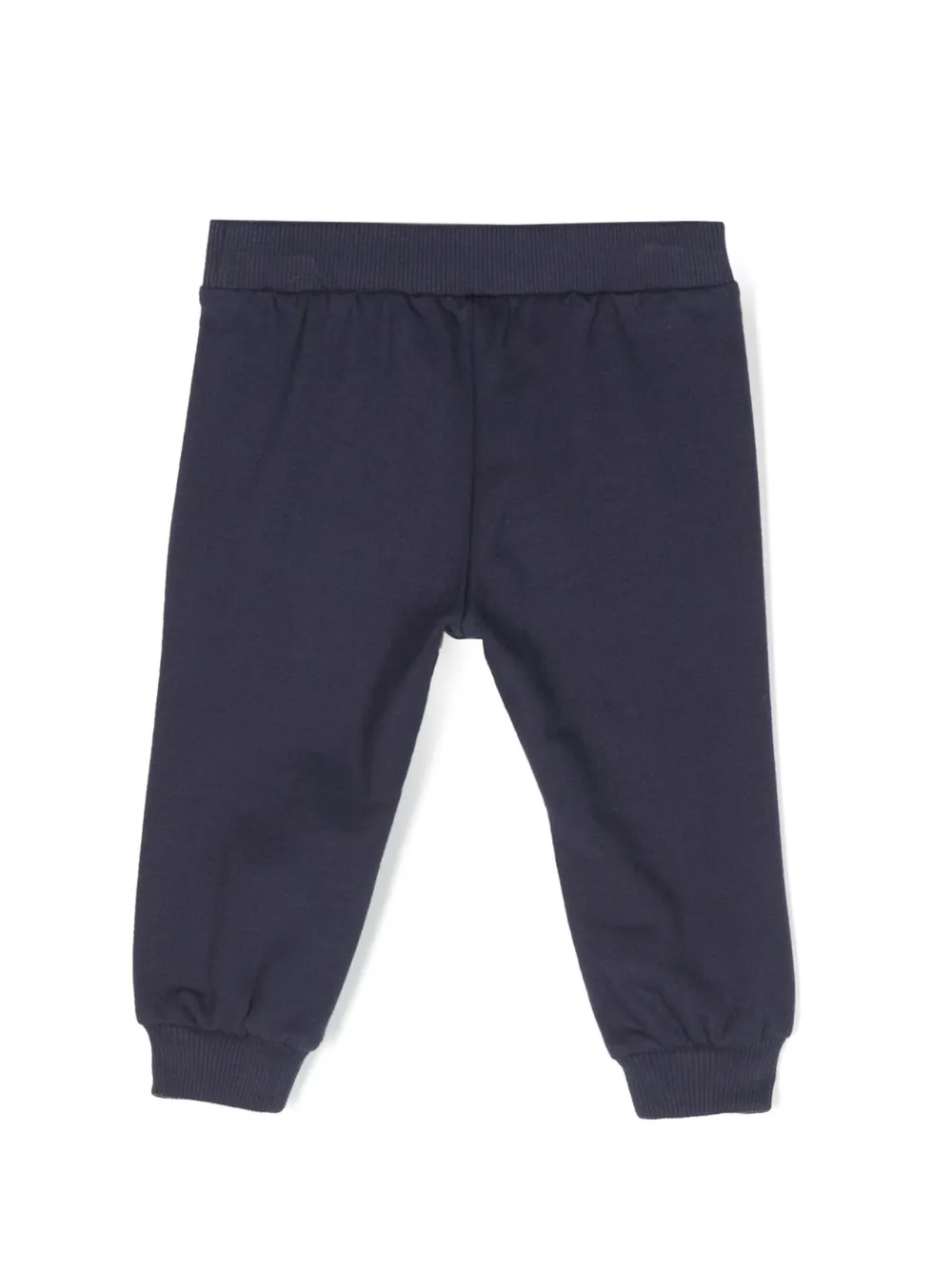 Темно-синий, эластичный хлопок, принт с логотипом, эластичный пояс и эластичные манжеты.