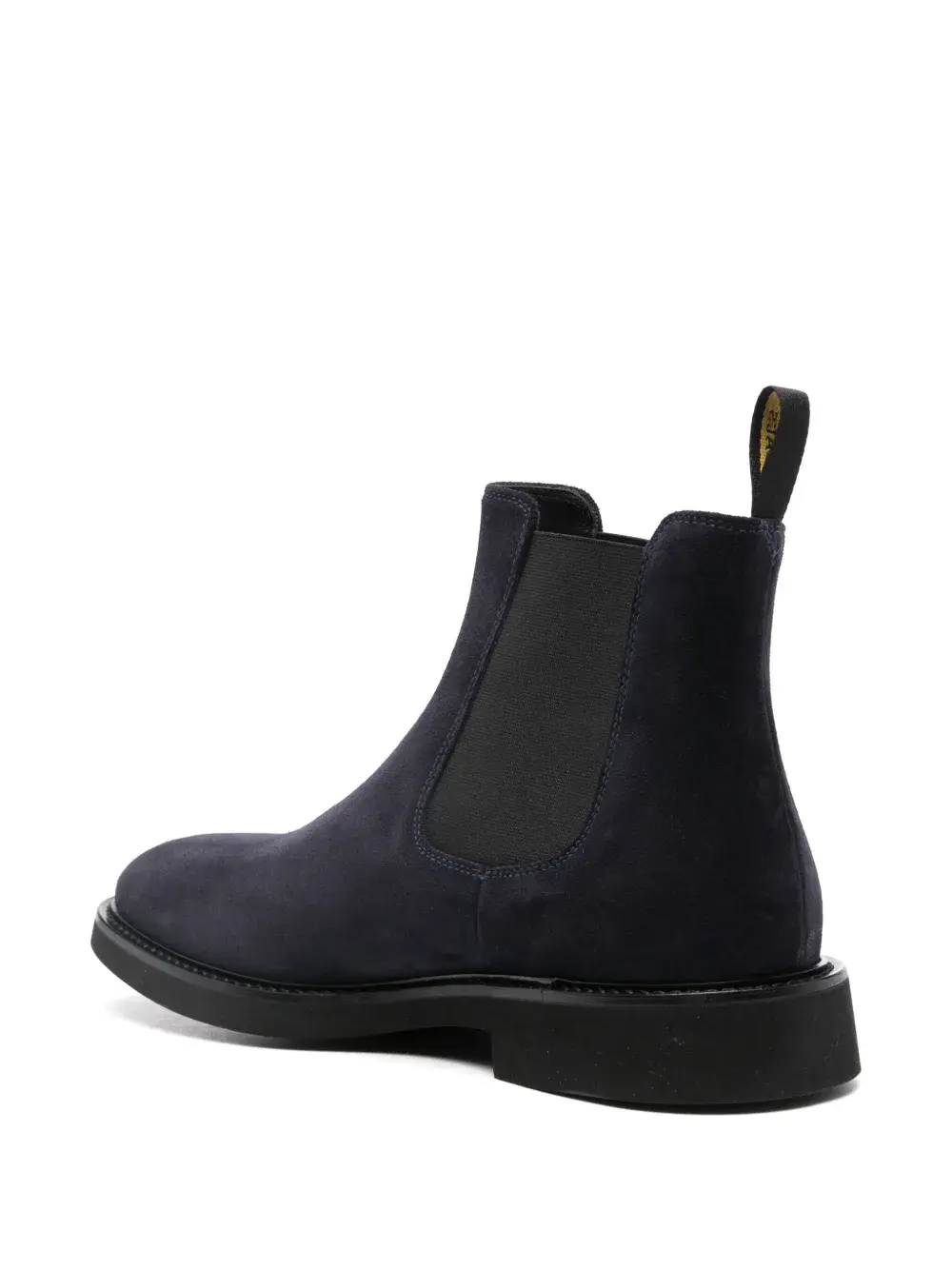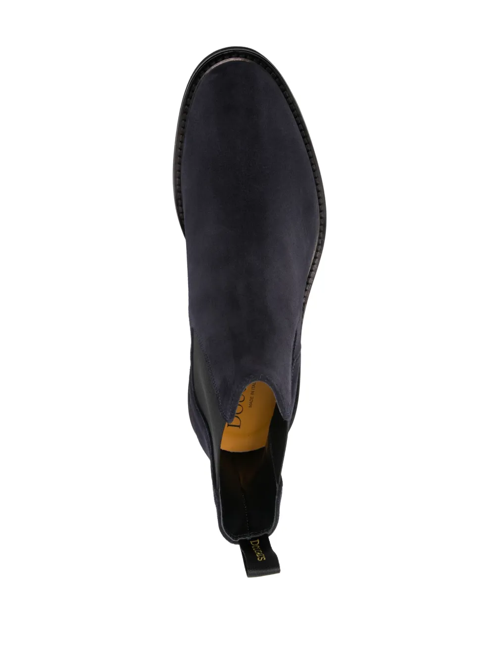 Темно-синий, замша из телячьей кожи, эластичные боковые вставки, петля для подтягивания сзади, миндалевидный носок, модель без застежки, стелька с логотипом и резиновая подошва.