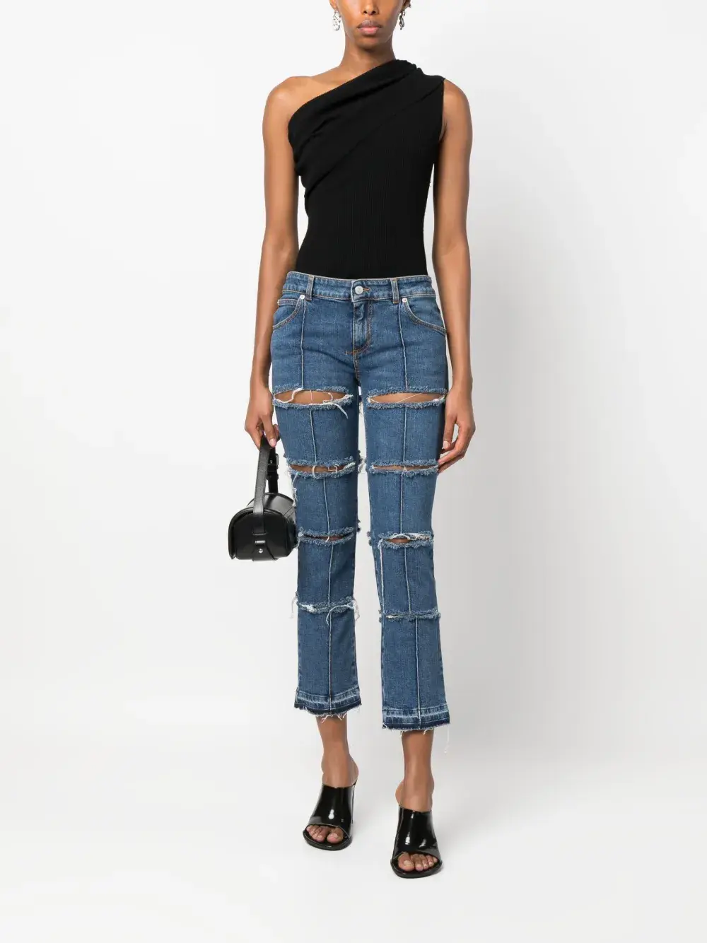 Укороченные джинсы с эффектом потертости Alexander McQueen, синий 52 753₽