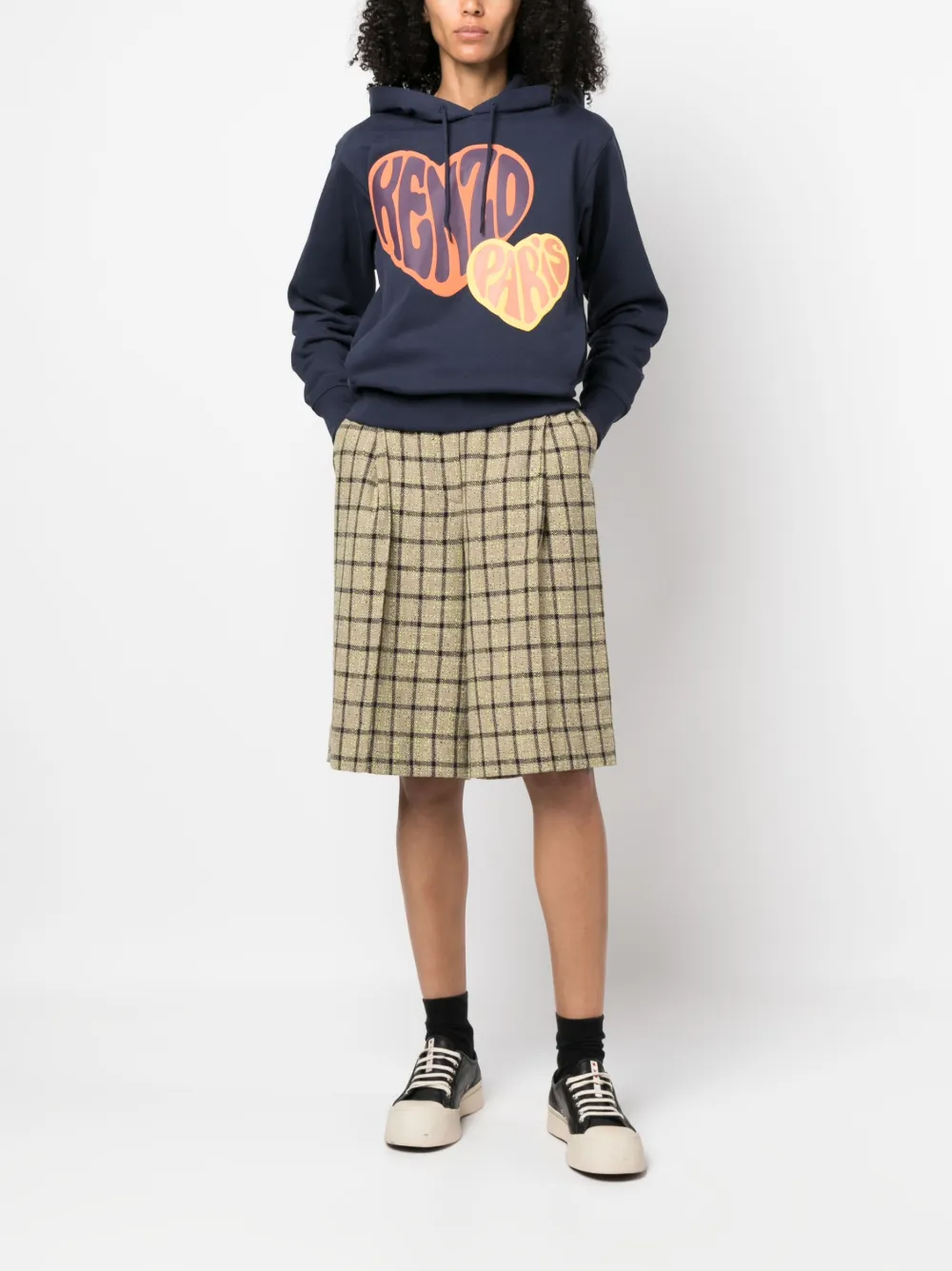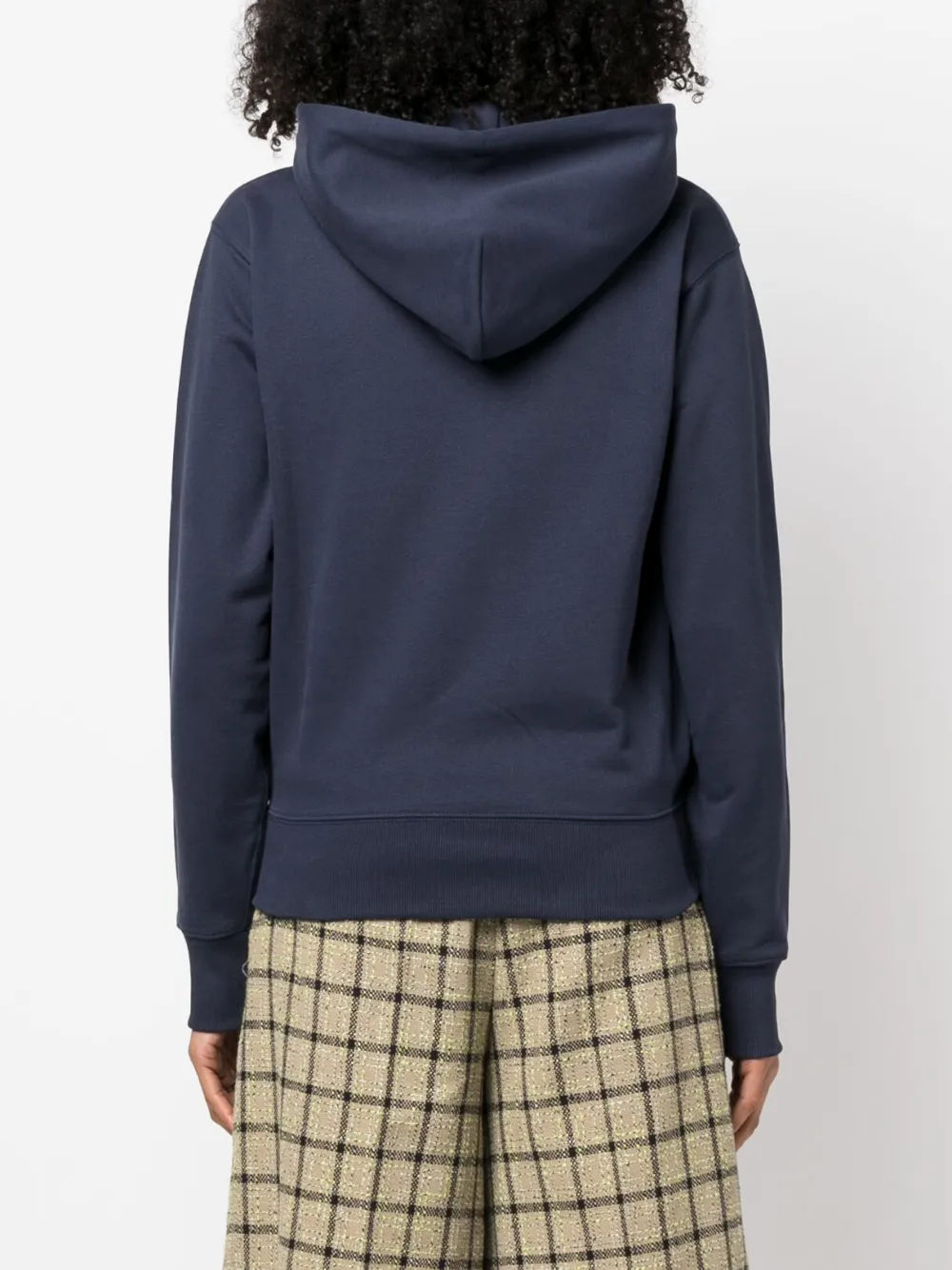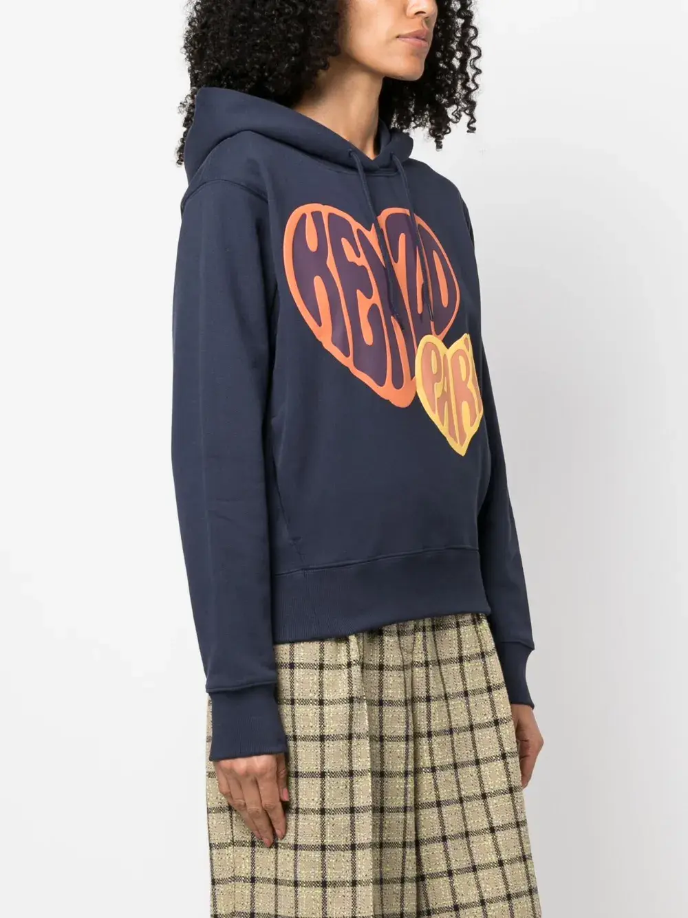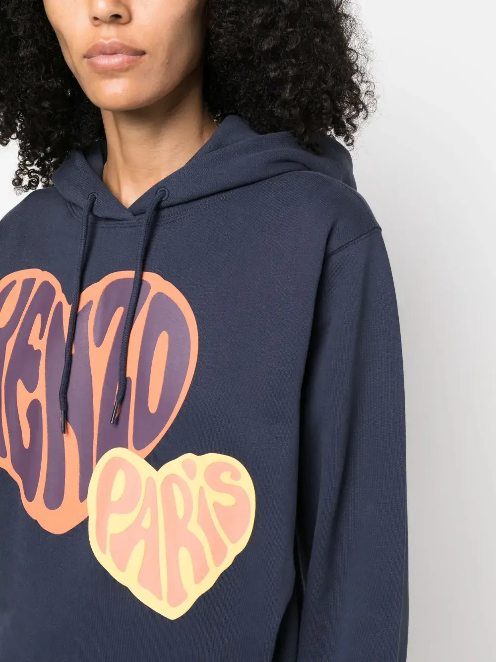 Темно-синий, разноцветный, хлопок, объемный логотип, узор с сердцами, затягивающийся на шнурок капюшон, приспущенные плечи и длинные рукава.