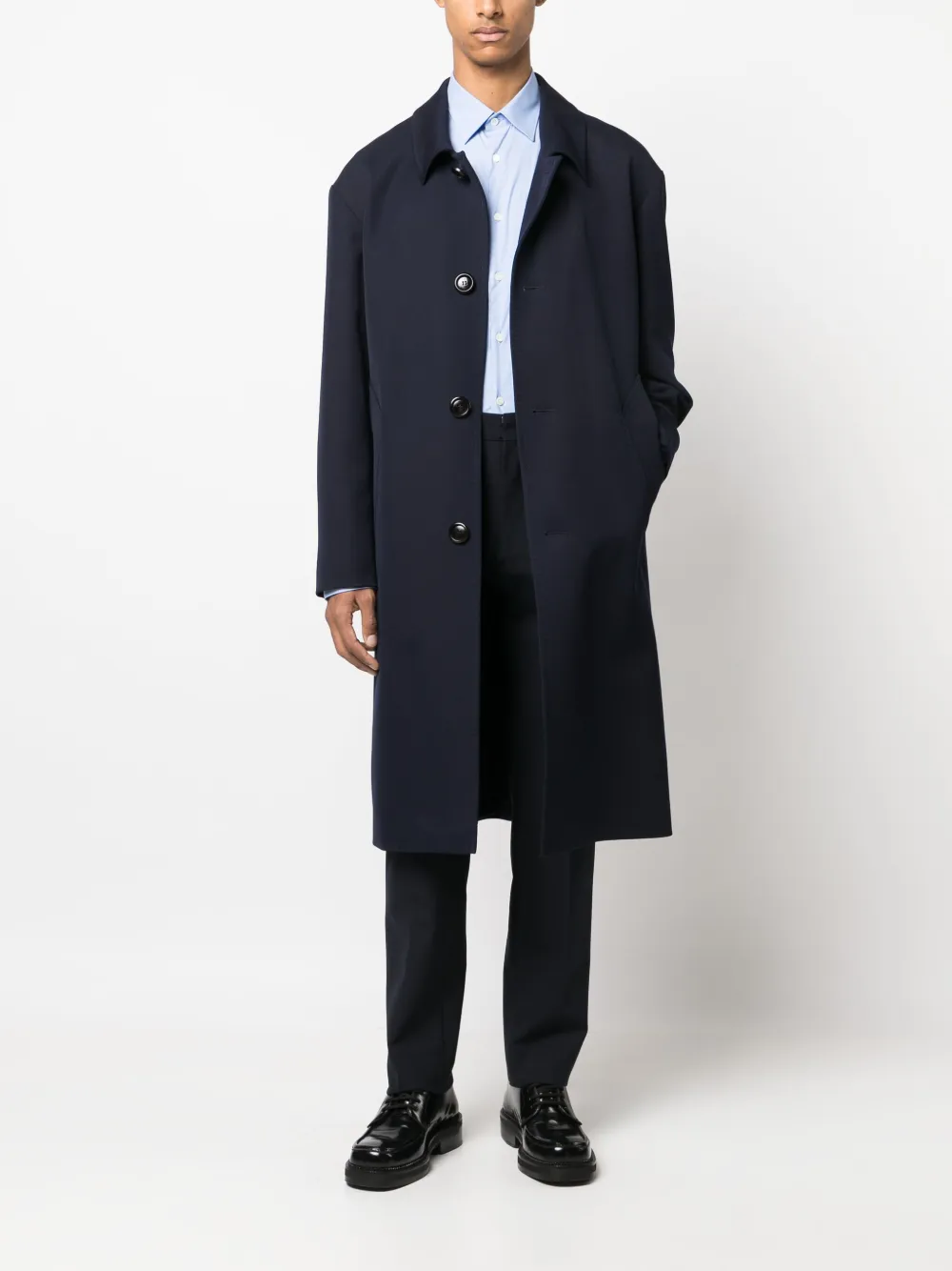 Синий, смесовый переработанный полиамид, смесовый хлопок, вышитый логотип на груди, нагрудный накладной карман, классический воротник, застежка на пуговицах спереди, длинные рукава, манжеты на пуговицах и прямой подол.
