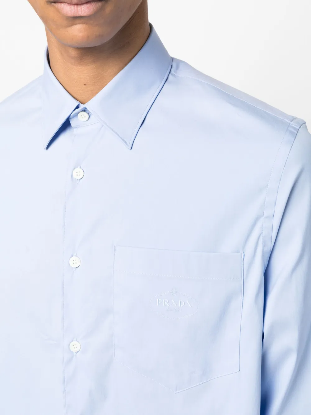Рубашка с длинными рукавами и вышитым логотипом Prada, синий