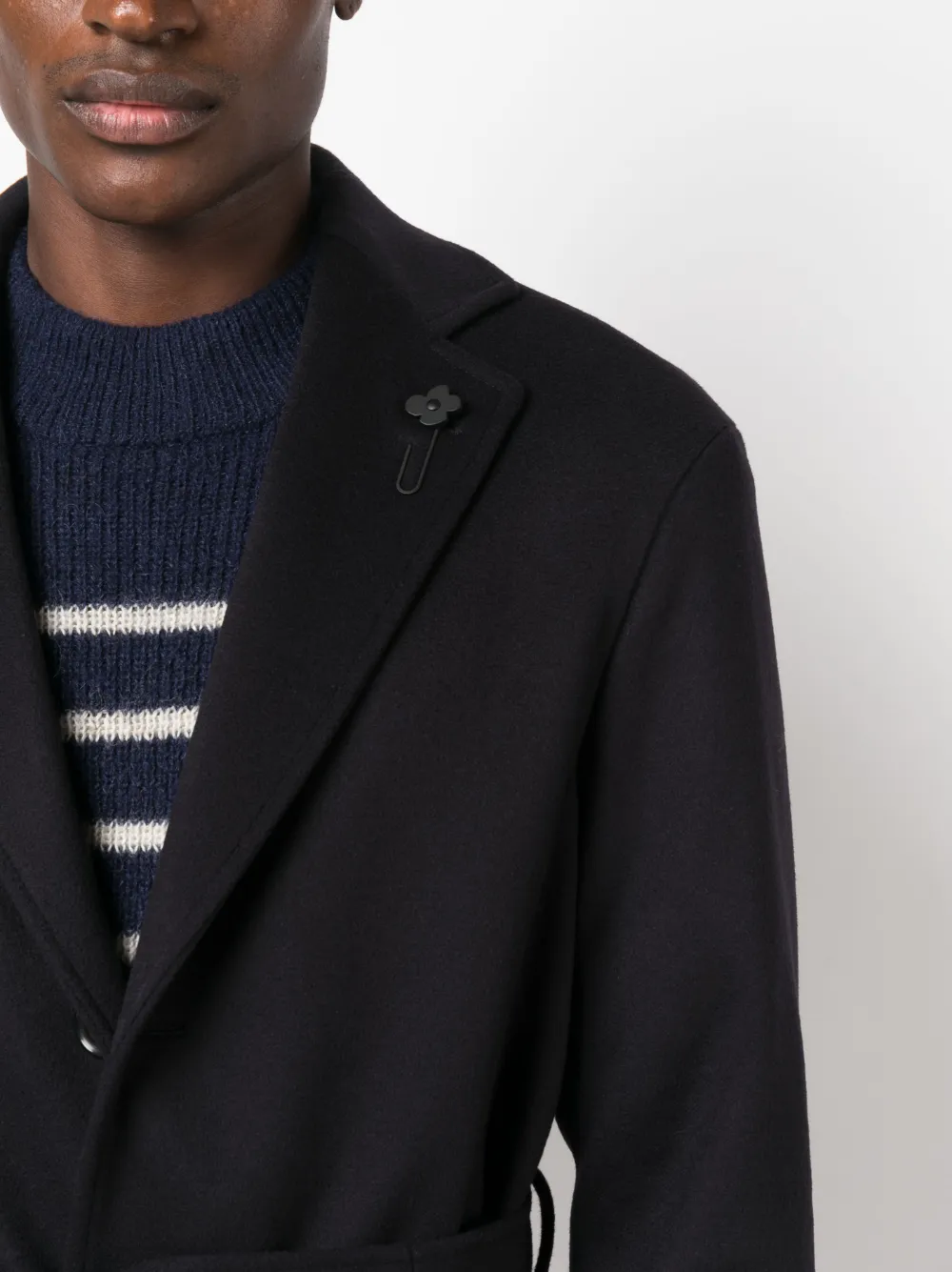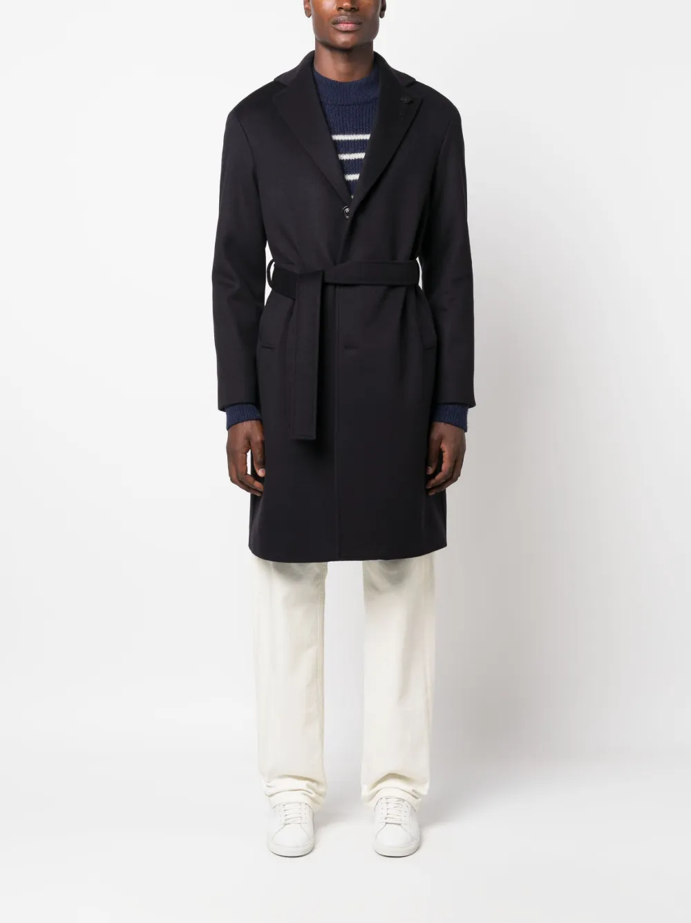 Шерстяное пальто с поясом Lardini, синий 119 731₽