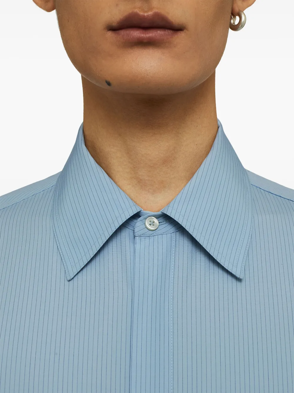 Рубашка в тонкую полоску с вышитым логотипом JIL SANDER, синий
