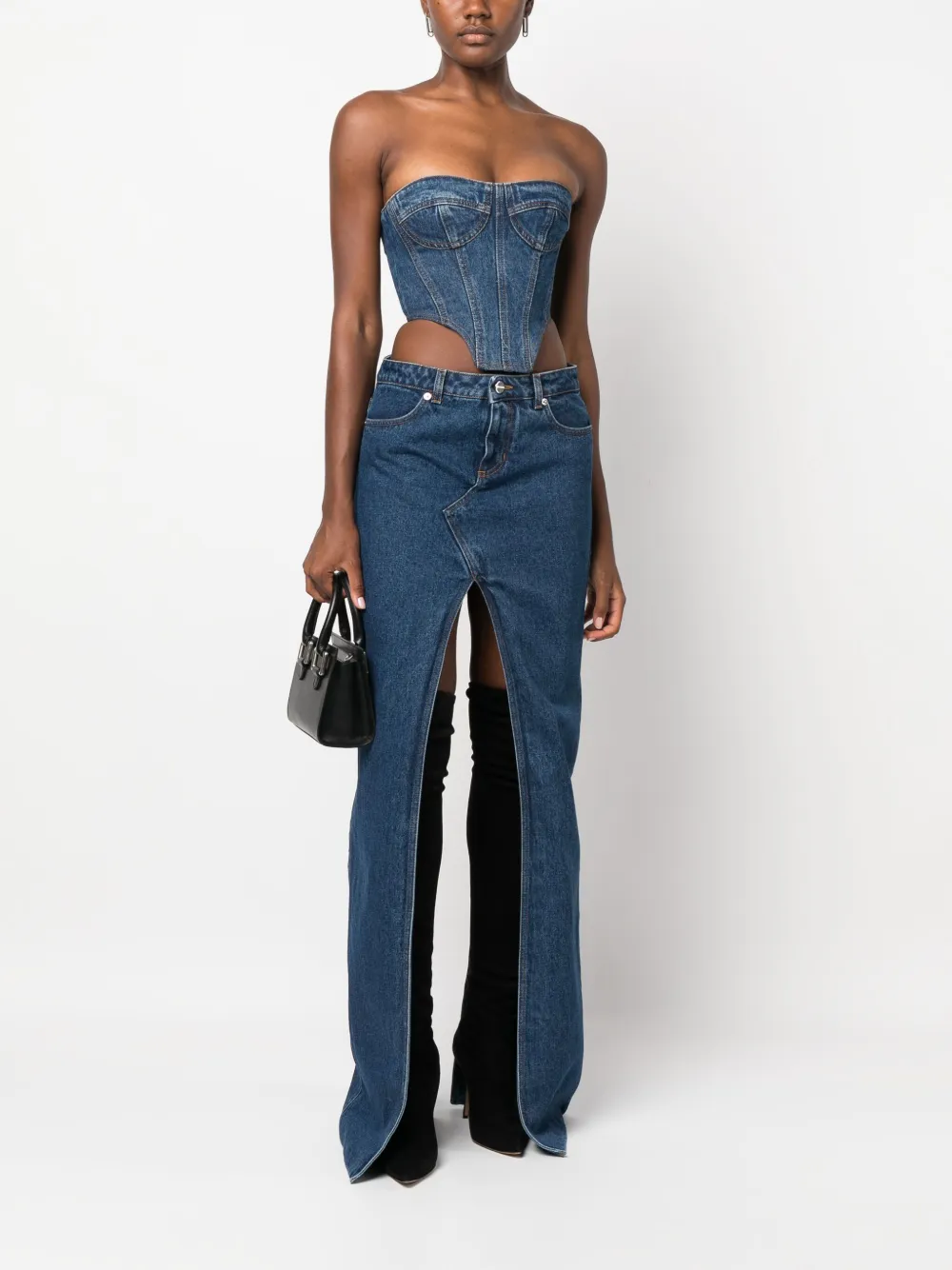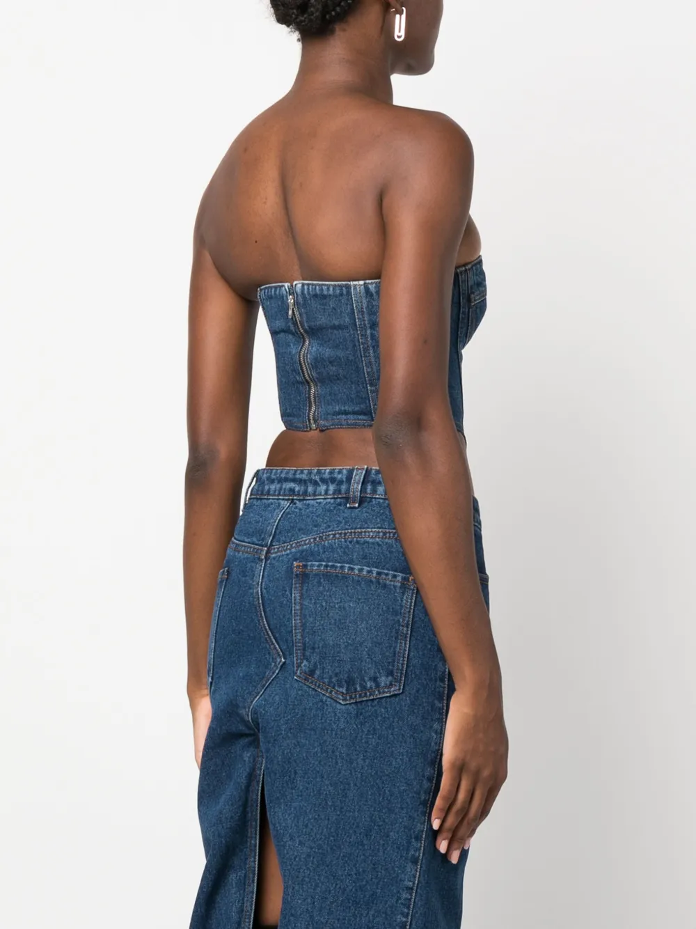 Укороченный топ-бюстье из денима David Koma, синий 48 572₽