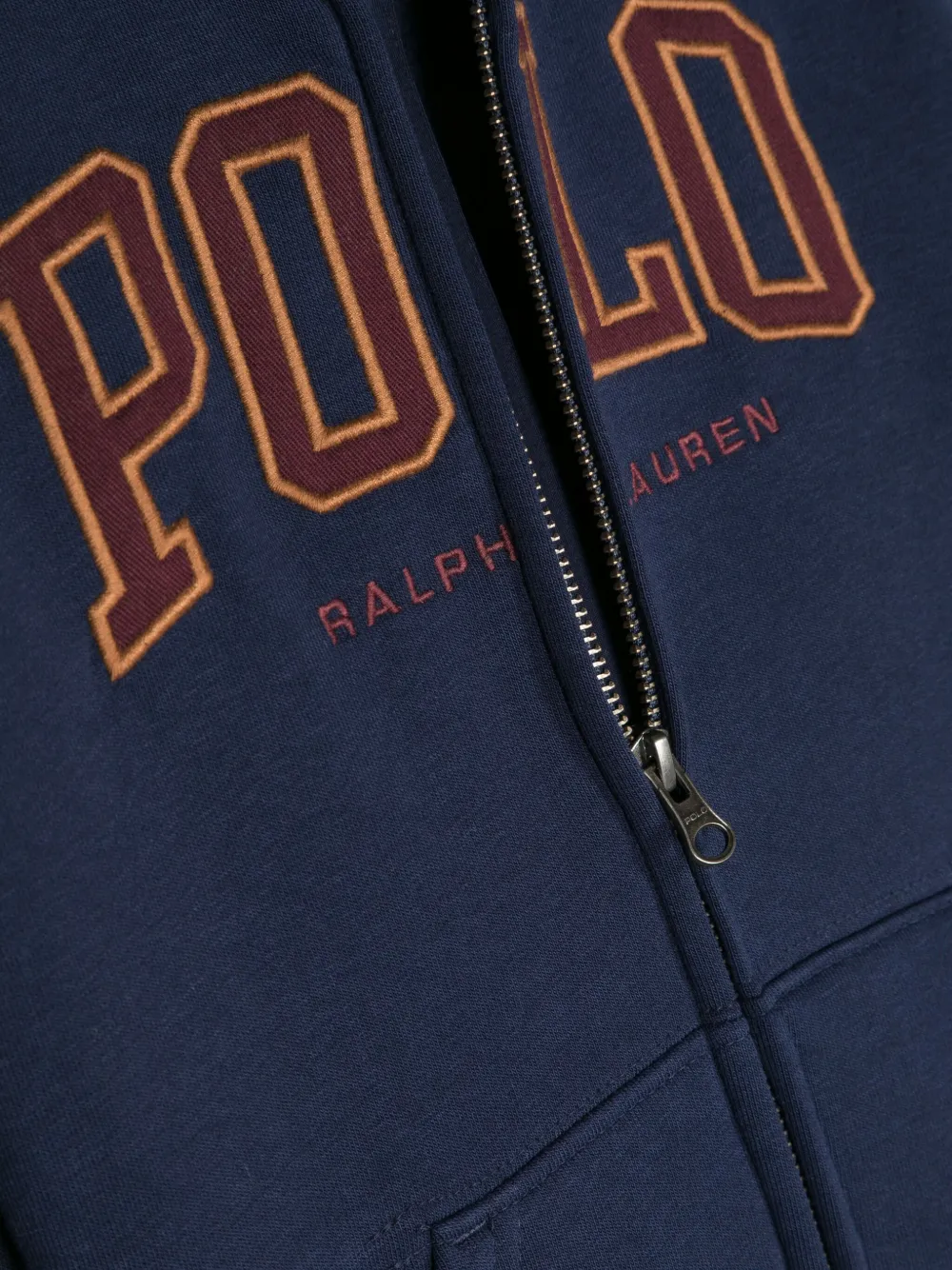 Темно-синий, хлопок, вышитый логотип на груди, длинные рукава, прямой подол, классический капюшон, застежка на молнии спереди, длинные рукава и знаковый логотип Polo Pony.