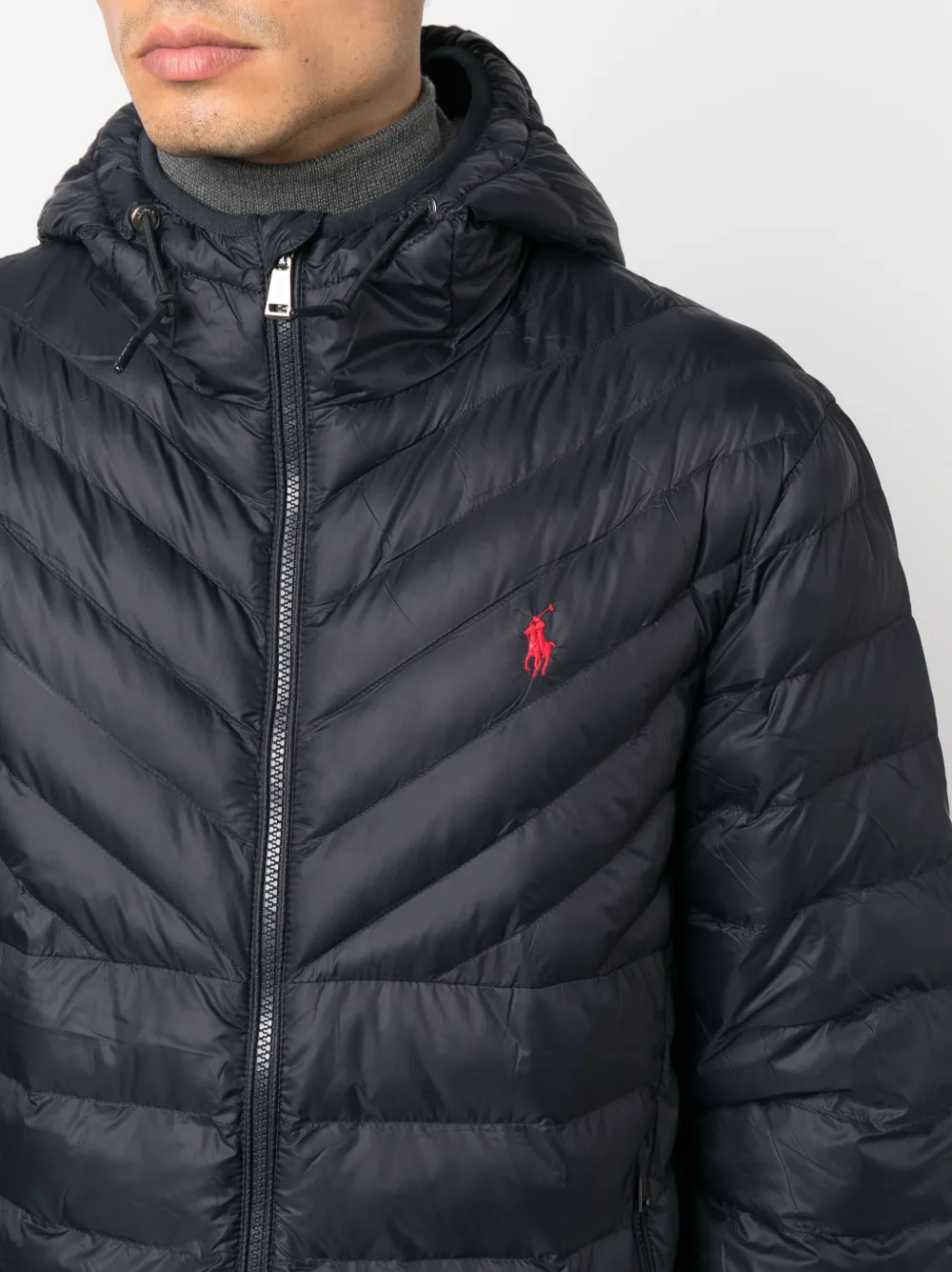 Темно-синий, переработанный полиэстер, знаковый логотип Polo Pony, вышитый логотип, дутый материал, застежка на молнии спереди, передние карманы на молнии, затягивающийся на шнурок капюшон, длинные рукава и прямой подол. Этот товар как минимум на 50% состоит из переработанных или повторно использованных материалов. Узнать больше о том, какие товары получают отметку «Ответственный выбор», можно из материала «Как мы оцениваем экологичность и этичность».