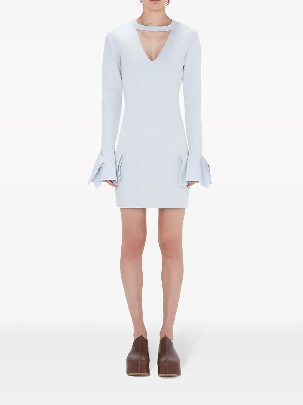 Платье мини с оборками и вырезами JW ANDERSON, синий