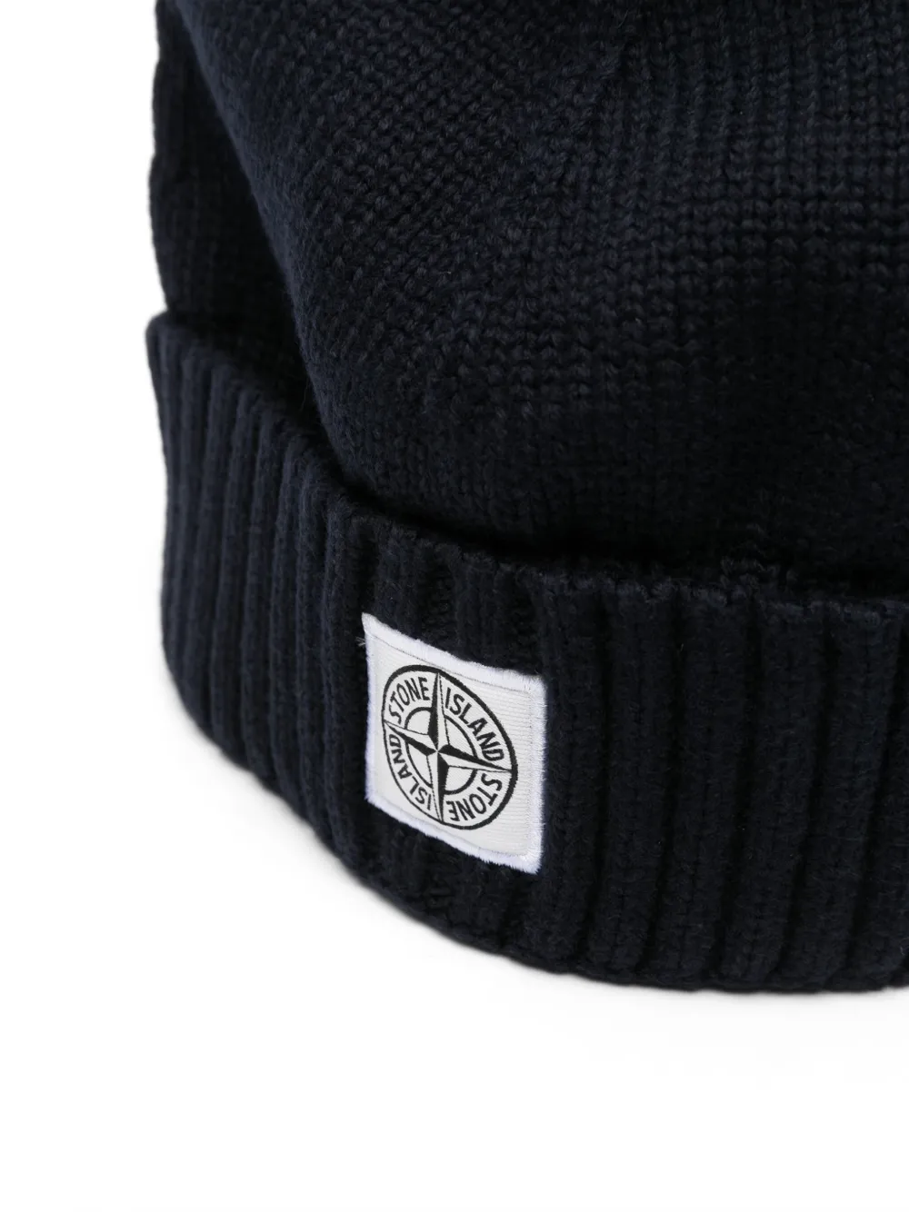 Шапка бини в рубчик с нашивкой-логотипом Stone Island Junior, синий 16 112₽