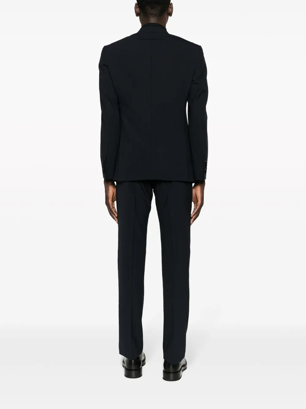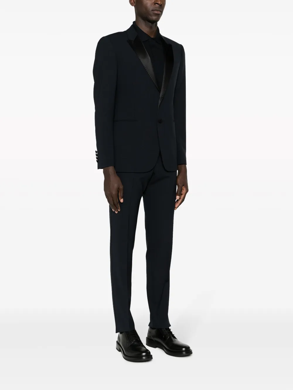 Подробнее о товаре: • темно-синий • смесовая вирджинская шерсть • две боковые шлицы сзади • заостренные лацканы • застежка на пуговицах спереди • прорезной карман на груди • два прорезных кармана спереди • длинные рукава • рукава с манжетами на пуговицах • стрелки • потайная застежка спереди • два прорезных кармана по бокам • два прорезных кармана на пуговицах сзади • зауженный крой