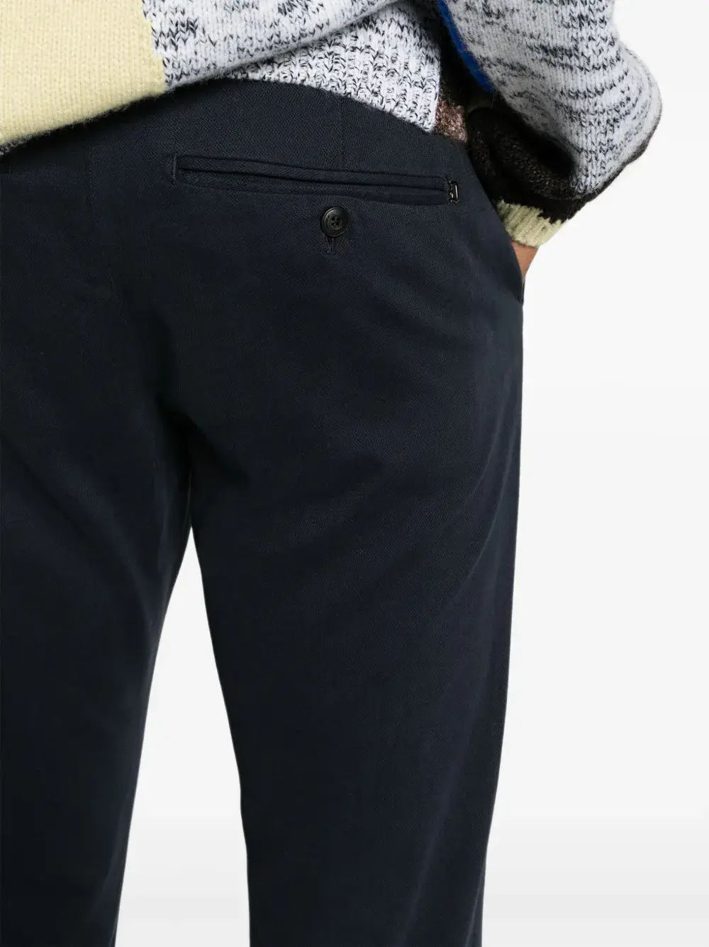Подробнее о товаре: Темно-синий, смесовый модал, петли для ремня, застежка на молнию и крючок, два прорезных кармана по бокам, два прорезных кармана на пуговицах сзади, зауженный крой и прямой подол. Этот товар как минимум на 50% состоит из материалов, которые признаны более безопасными для окружающей среды, и/или произведены с использованием методов, которые помогают сократить потребление воды и химических веществ. Узнать больше о том, какие товары получают отметку «Ответственный выбор», можно из материала «Как мы оцениваем экологичность и этичность».