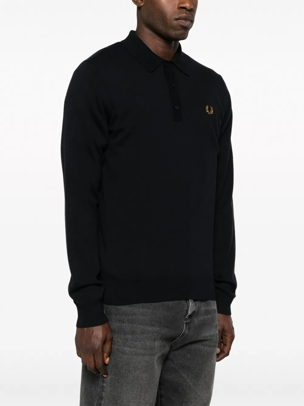 Рубашка-поло с длинными рукавами и вышитым логотипом Fred Perry, синий